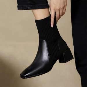 Plus Size 35-43 Women Boots Winter Shoes Knitting Sock Ankle Boots Ladies Square Toe High Heels Weave botas mujer 9398N