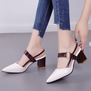 Summer Spring Women High Heels Dress Shoes Pointed Toe Sandals Ankle Strap Pumps Black Square Heeld Sandalias Mujer Office 9154N