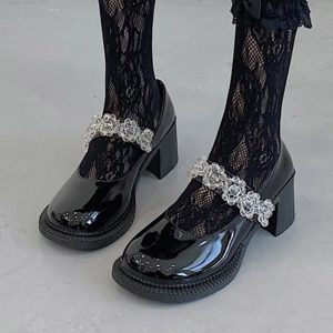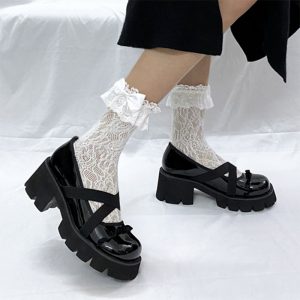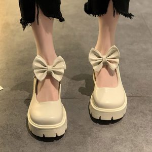 Lolita Shoes Bow Platform Leather Shoes Woman Round Toe Mary Janes Shoes High Heels Thick Sole Ladies Shoes zapatos mujer 9238N