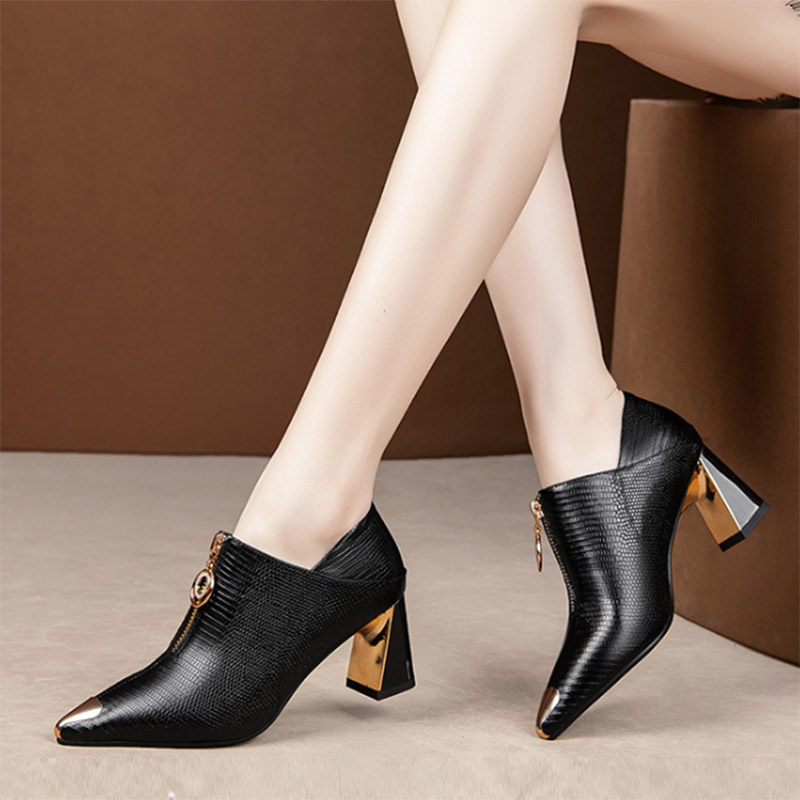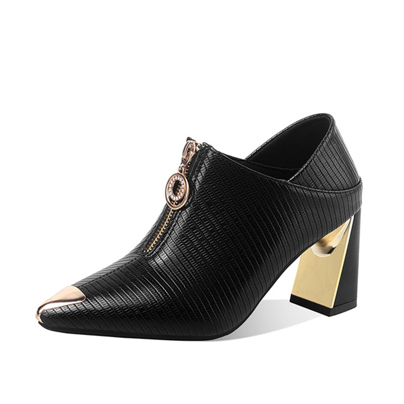Cheap Women’s Pumps, Buy Quality Shoes Directly from China Suppliers:Sexy High Heels Bare Boots Autumn New Fashion Women Shoes Square Black Zip Leather Ladies Shoes Metal Pointed Toe Pump 8472