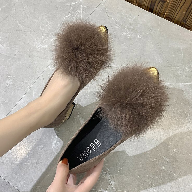 Cheap Women’s Pumps, Buy Quality Shoes Directly from China Suppliers:Fur Boat Shoes Winter Autumn Metal Gold Pointed Toe Women Slip on Shoes Faux Suede Comfort Ladies Mid Heels Loafers 8480N