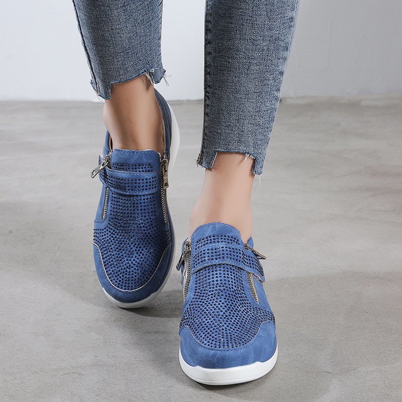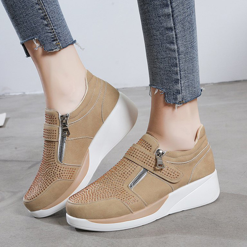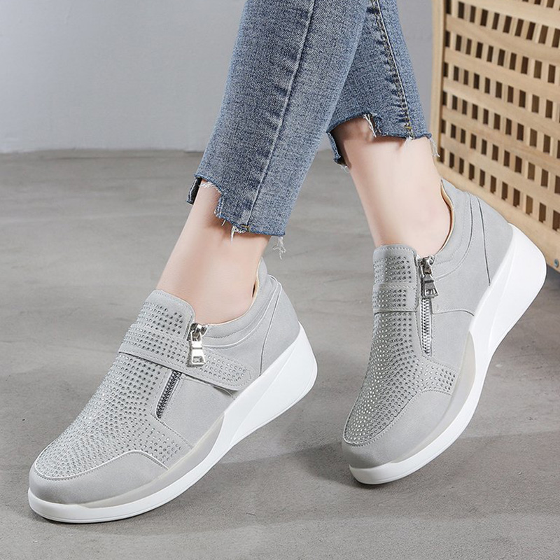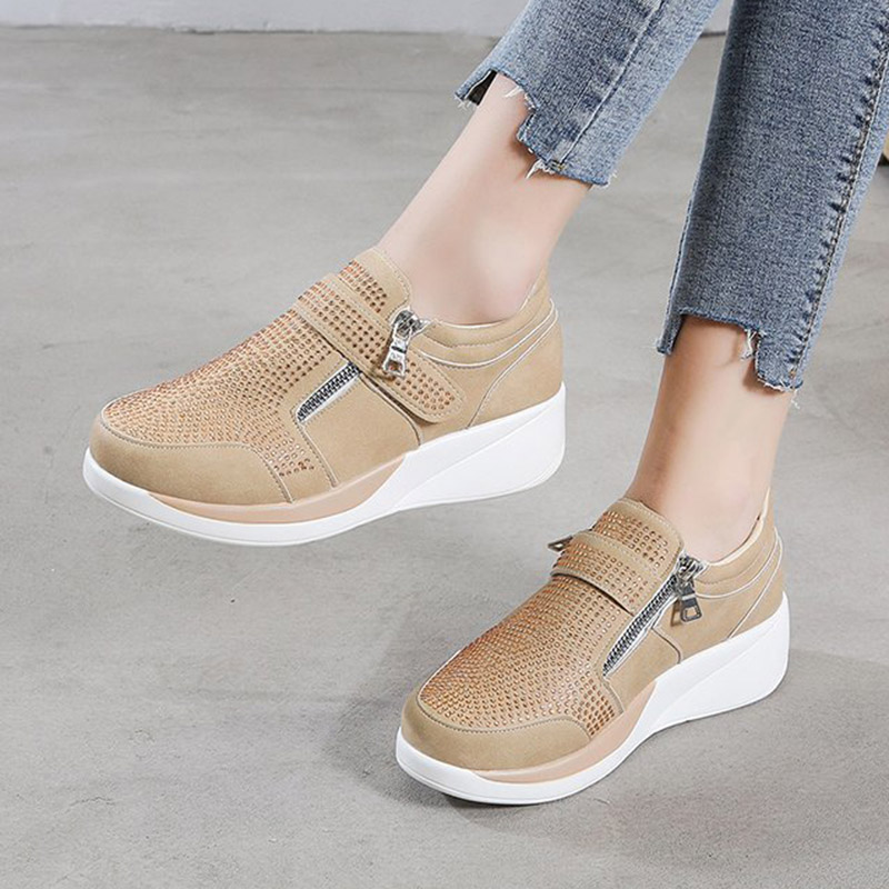 Plus Size 35-43 Winter Autumn Women Sneakers Bling Crystal Wedges Casual Shoes Zip Sport Flat High Top Chunky Leisure Shoe 8620N