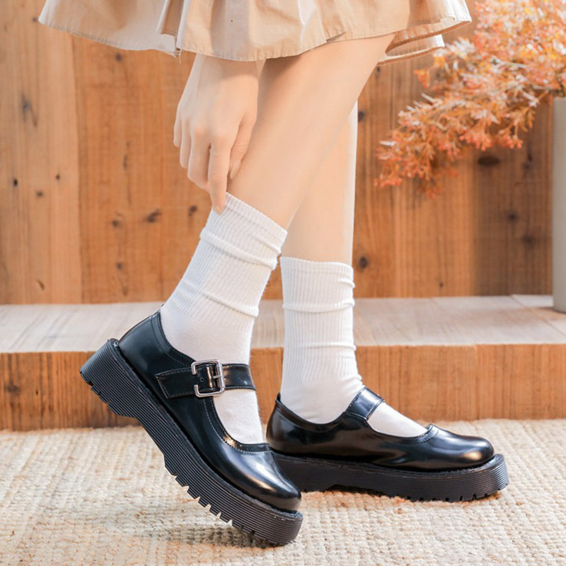 Lolita Shoes Flat on Platform Shoes Women Mary Janes Shoes Black Leather Shoes Buckle Low Heels Girls Shoes Spring Autumn 8644N