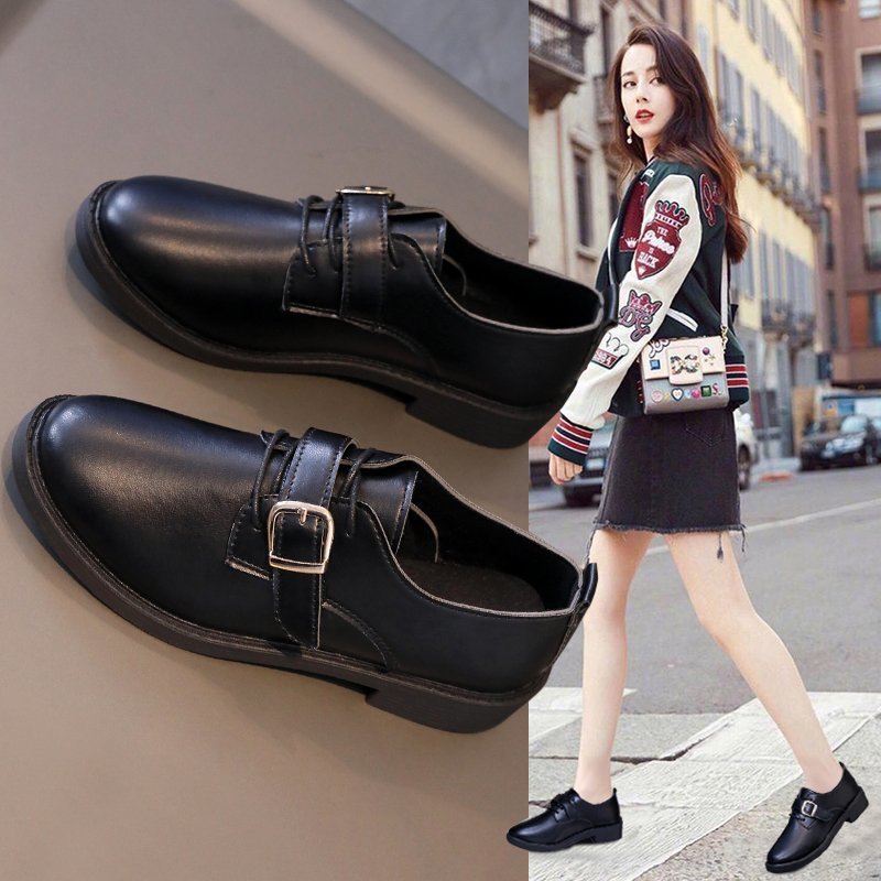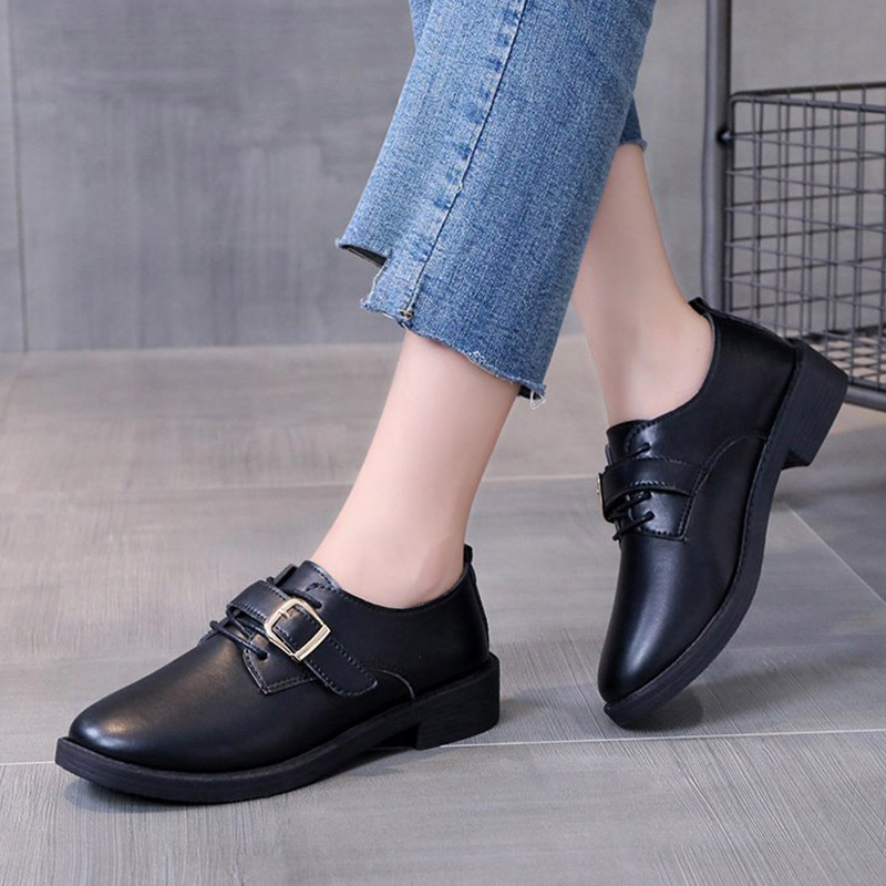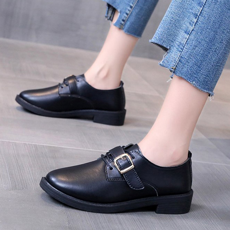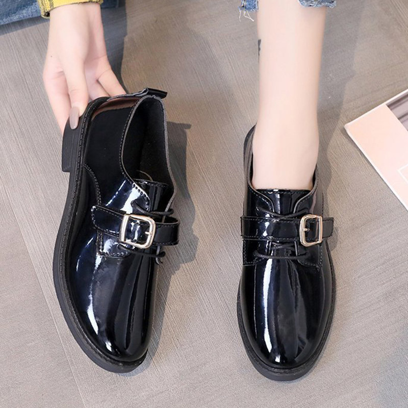 Autumn Women Oxford Shoes Patent Leather Brogue Shoes Woman Flats Black Buckle Casual Shoes zapatos mujer Spring 8712N