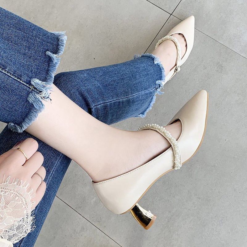 Cheap Women’s Pumps, Buy Quality Shoes Directly from China Suppliers:Designer Shoes Flock String Bead Mary Janes Shoes Women Pointed Toe Pearl Pumps Gold Retro Ladies Shoes zapatos mujer 8731N