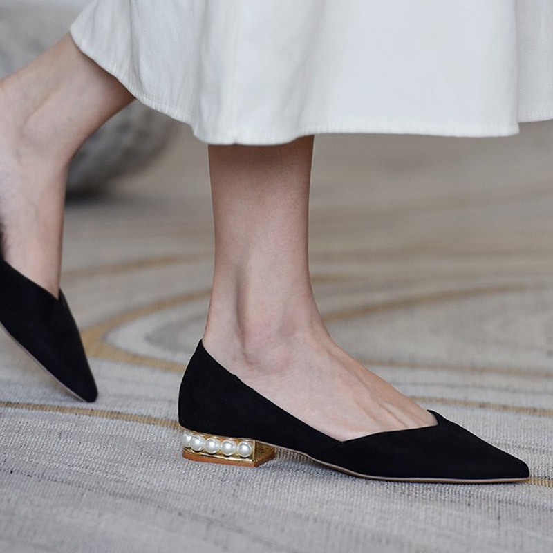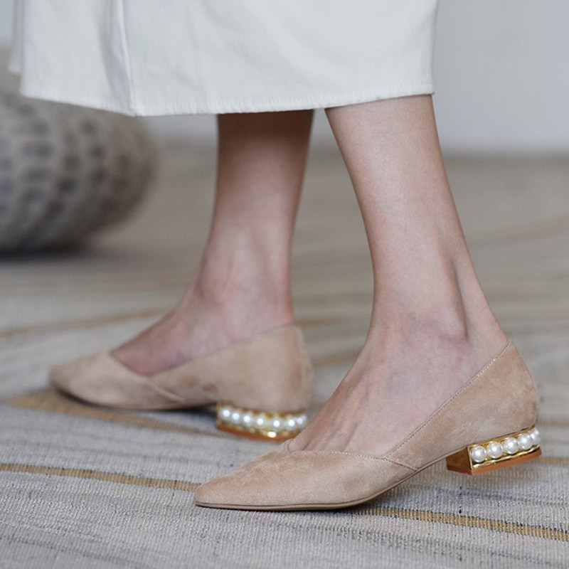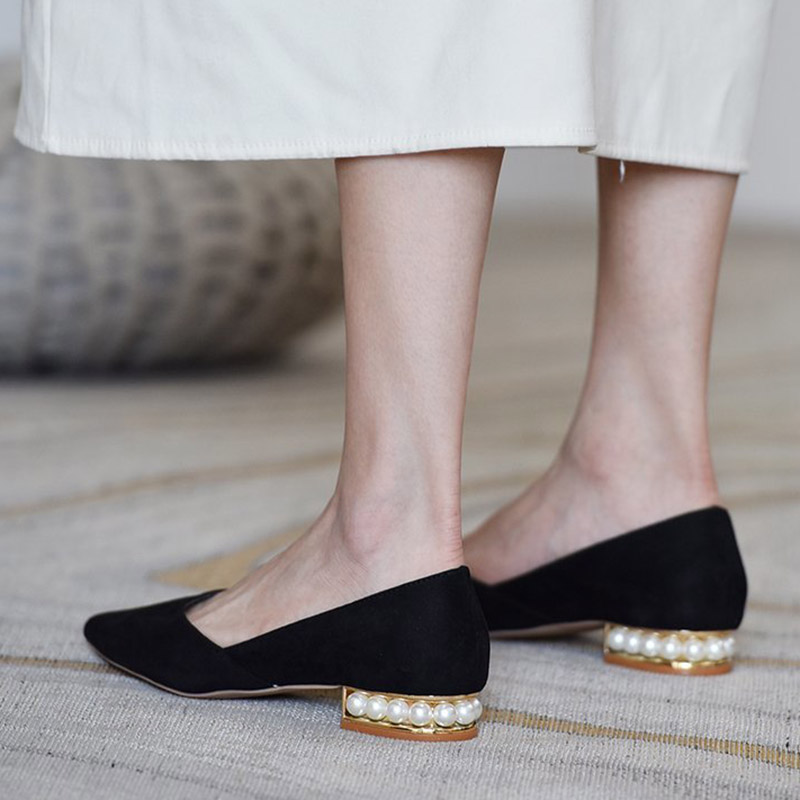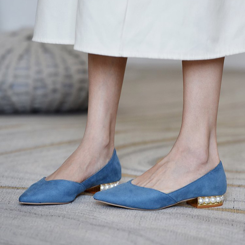 Fashion Women Flats Flock Slip on Shoes Pearl Heel Boat Shoes Pointed Toe Ladies Shoe Red Spring Autumn zapatos mujer 8732N