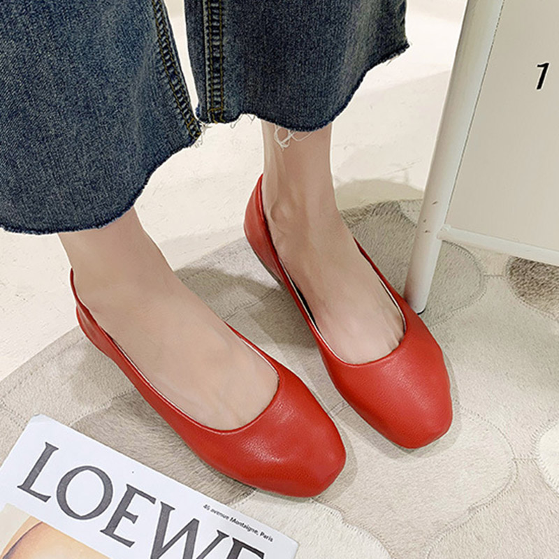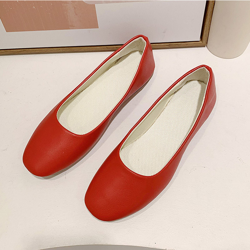 Large Size Women Shoes Square Toe Slip on Flat Shoes Woman Loafers Candy Color Boat Shoes Comfort Ladies Shoe zapatos mujer Red