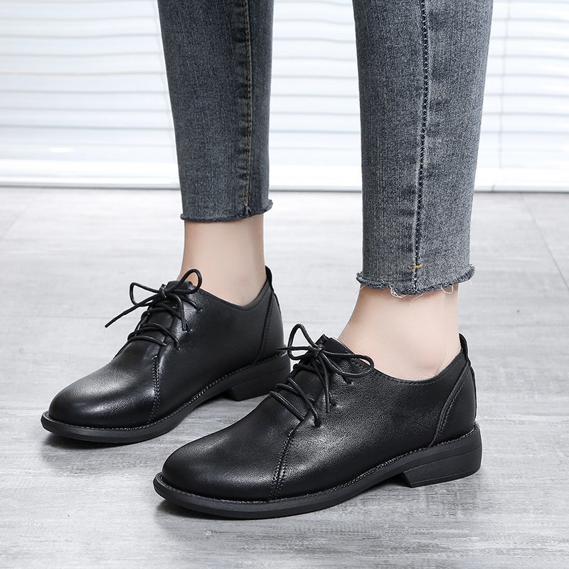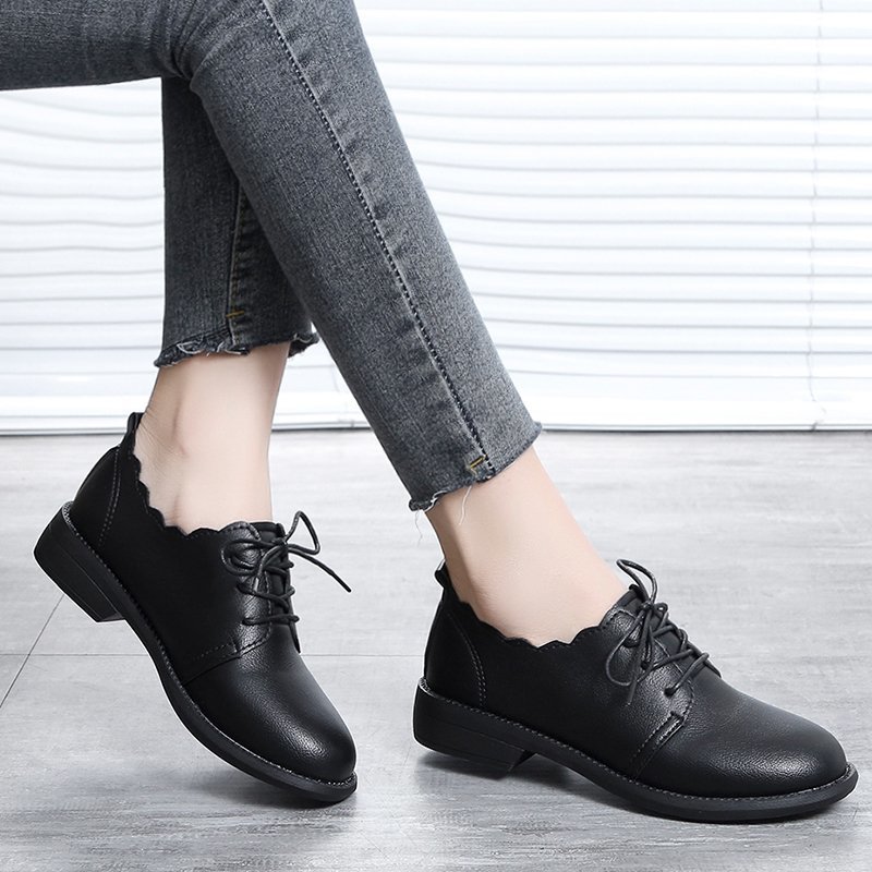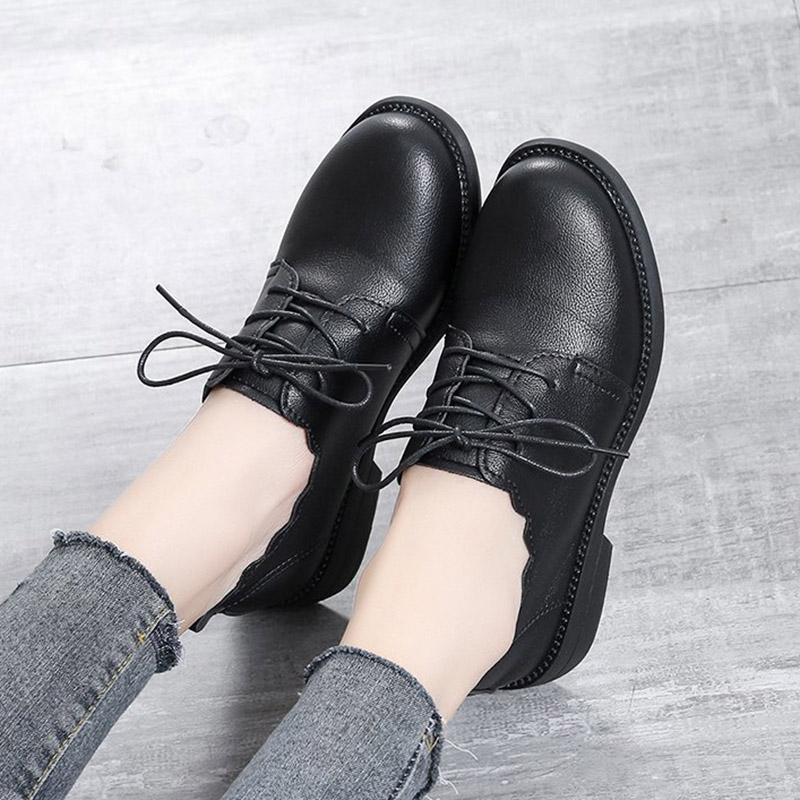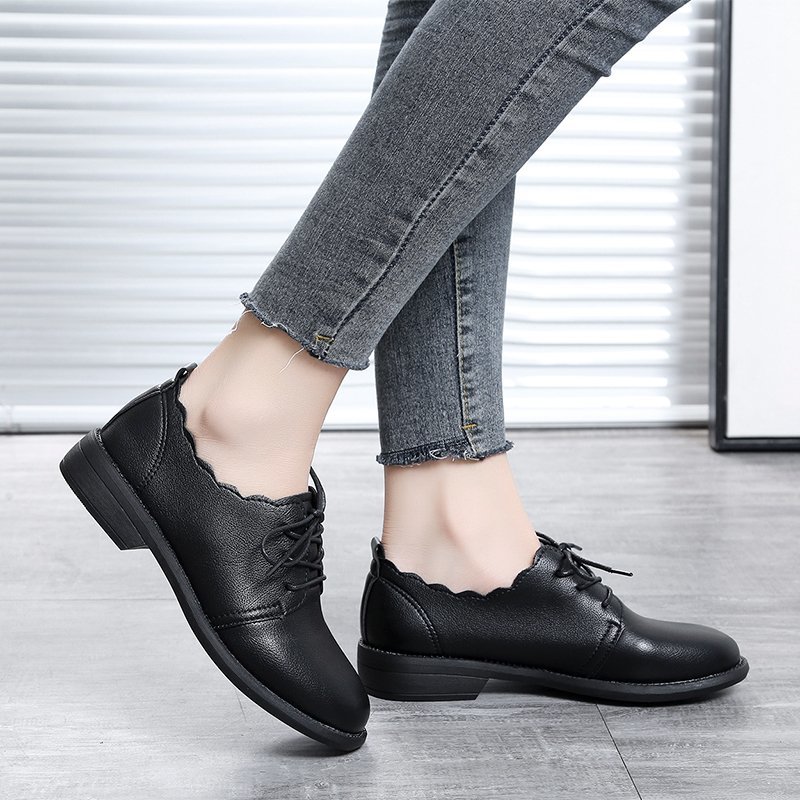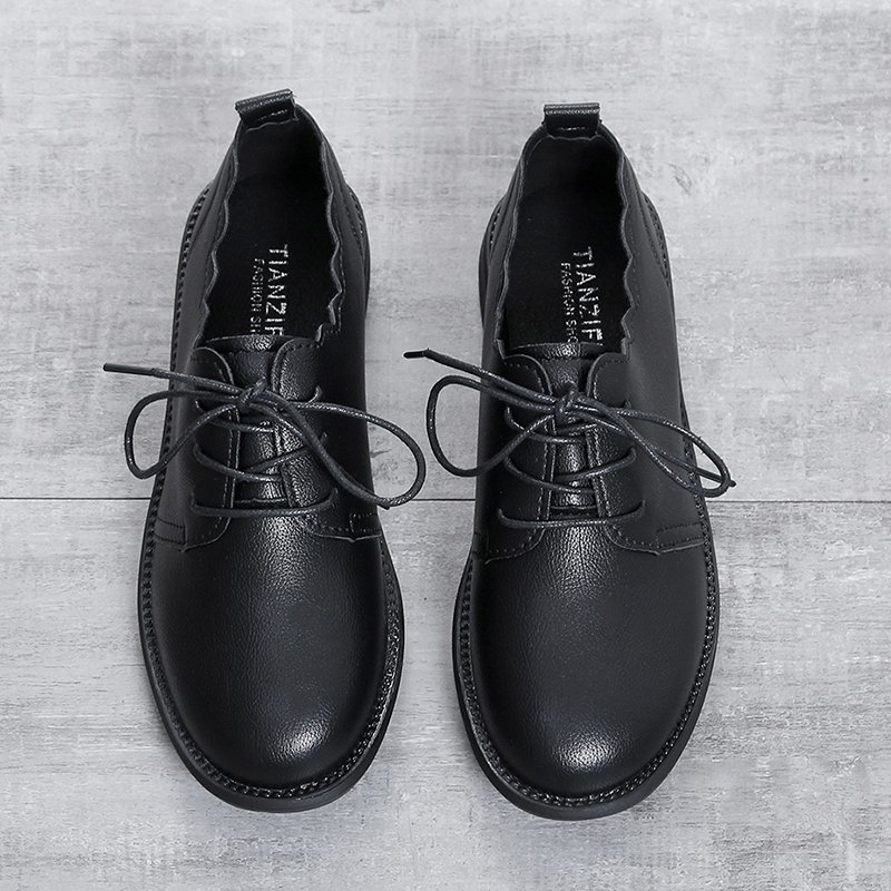 Spring Autumn Women’s Oxford Shoes Black Lace Up Leather Shoes Wave Brogue Shoes Cross-tied Casual Shoes zapatos mujer 8812N