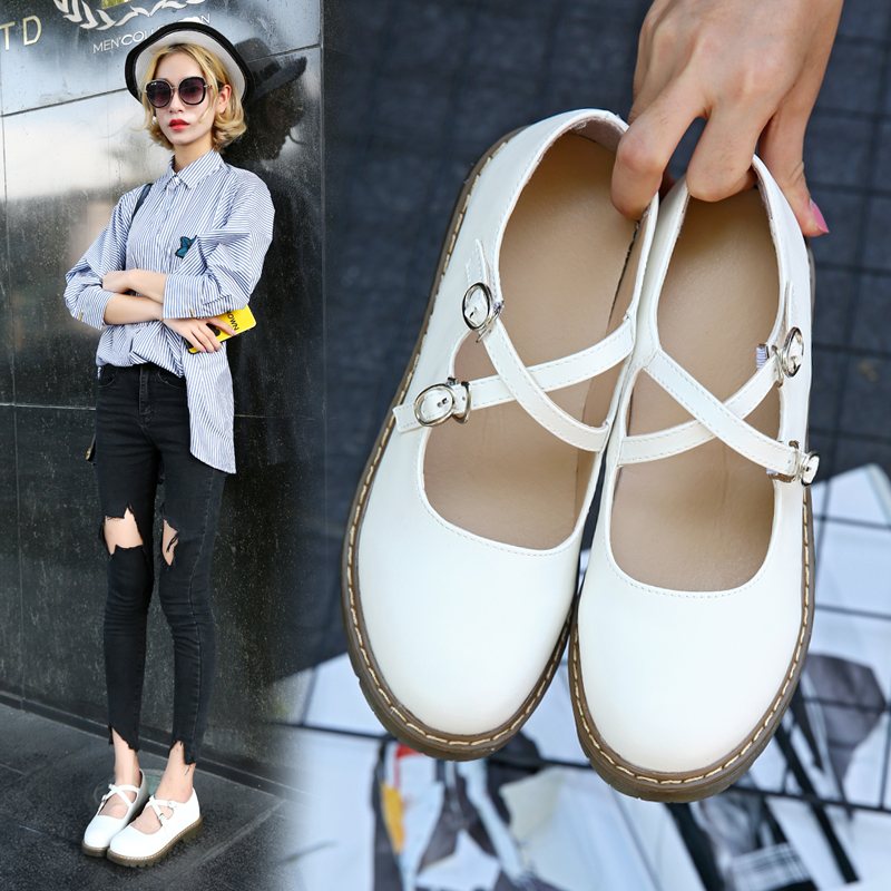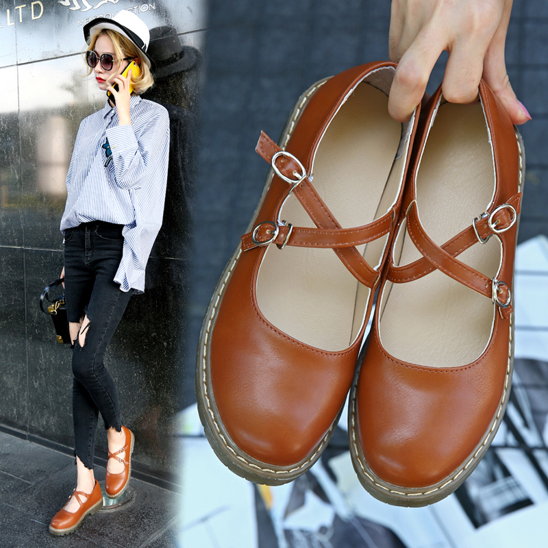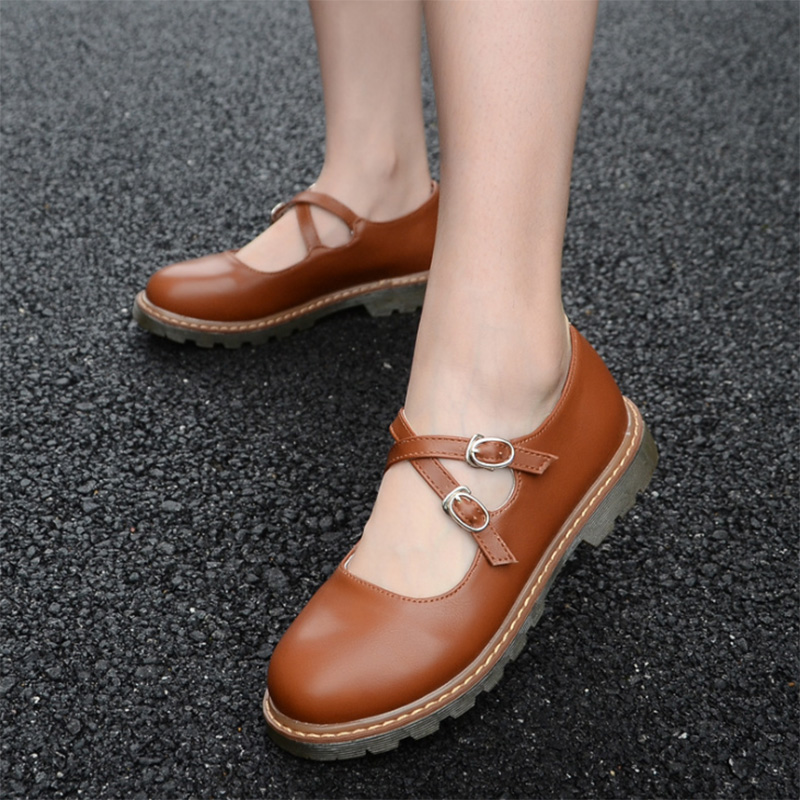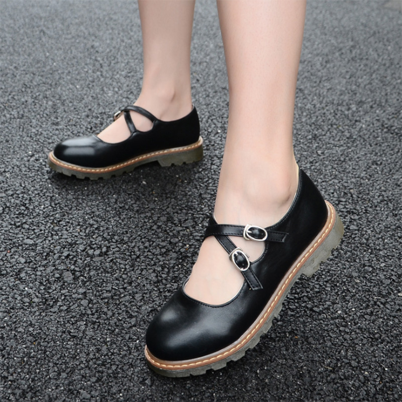 Cheap Women’s Flats, Buy Quality Shoes Directly from China Suppliers:Lolita Shoes Double Buckle Mary Janes Shoe Platform Girls Shoes Black Women Casual Shoes White Flats Round Toe Brown 8822N