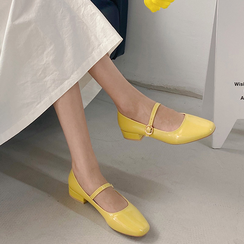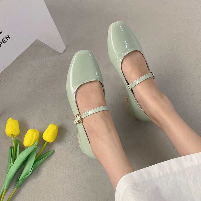 Spring Autumn Women Mary Janes Shoes Patent Leather Low Heels Dress Shoes Square Toe Shallow Buckle Strap Girls Shoes 8828N