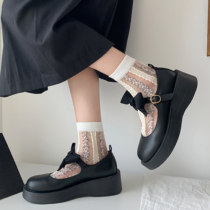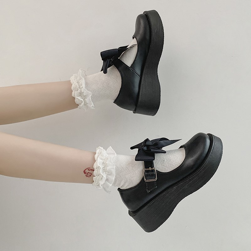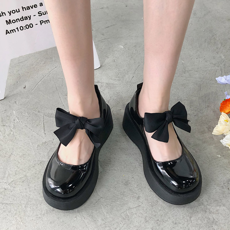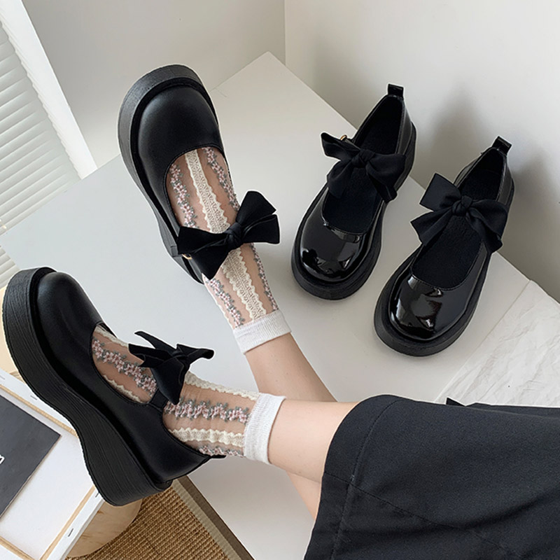 Lolita Shoes Women Platform Mary Janes Shoes Big Butterfly Girls Shoes Women Thick Sole Shoes Shallow Black Spring Autumn 8851N