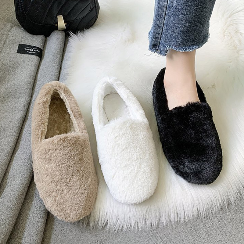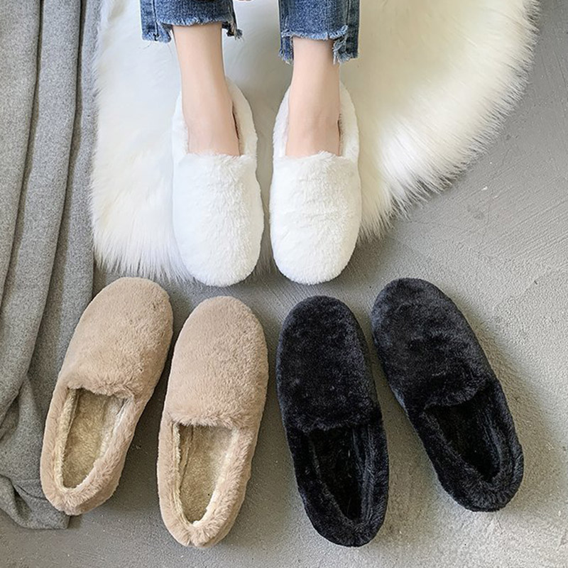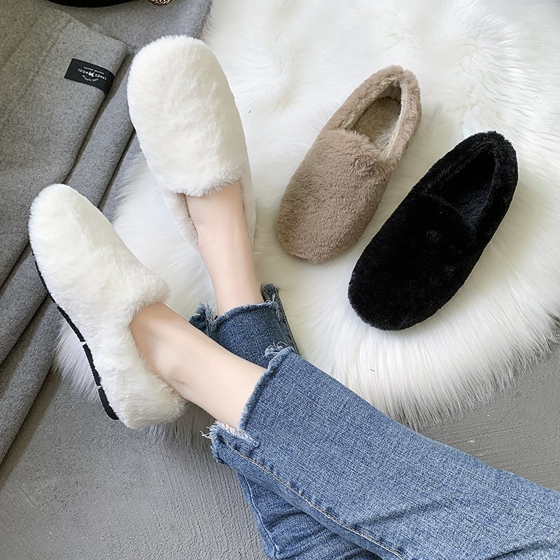 Cheap Women’s Flats, Buy Quality Shoes Directly from China Suppliers:Winter Women Cotton Padded Shoes Plush Loafers Slip on Flat Shoes White Black Warm Snow Shoes Ladies Boat Shoe Fur 8857N
