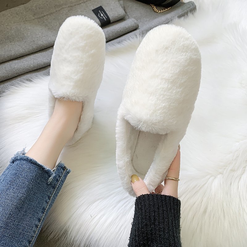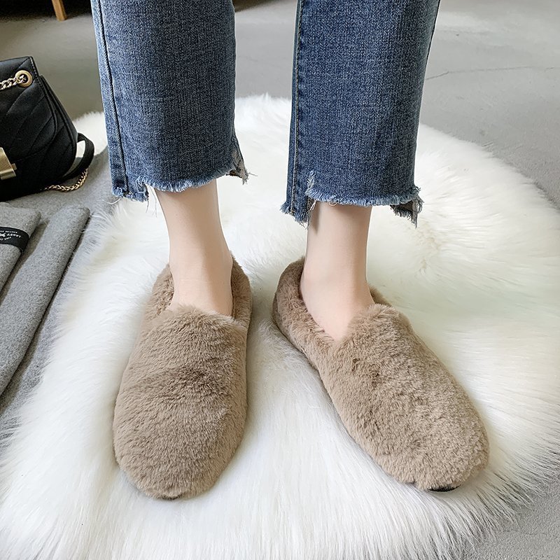 Winter Women Cotton-Padded Shoes Plush Loafers Slip on Flat Shoes White Black Warm Snow Shoes Ladies Boat Shoe Fur 8857N