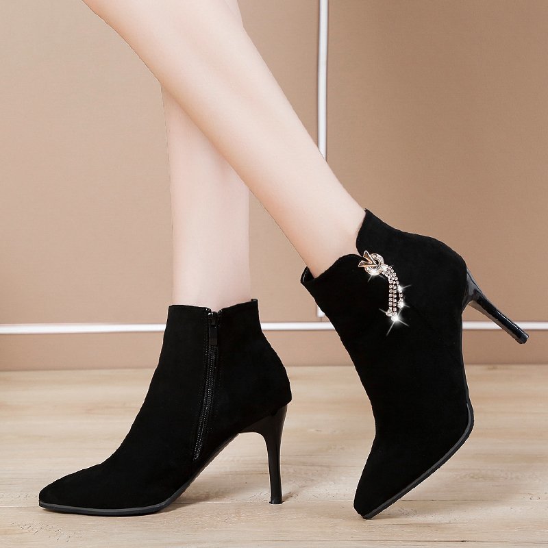 Cheap Ankle Boots, Buy Quality Shoes Directly from China Suppliers:Winter Autumn High Heels Ankle Boots Women Dress Shoes Faux Suede Booties Pointed Toe Thin Heeled Office botas mujer 8863N