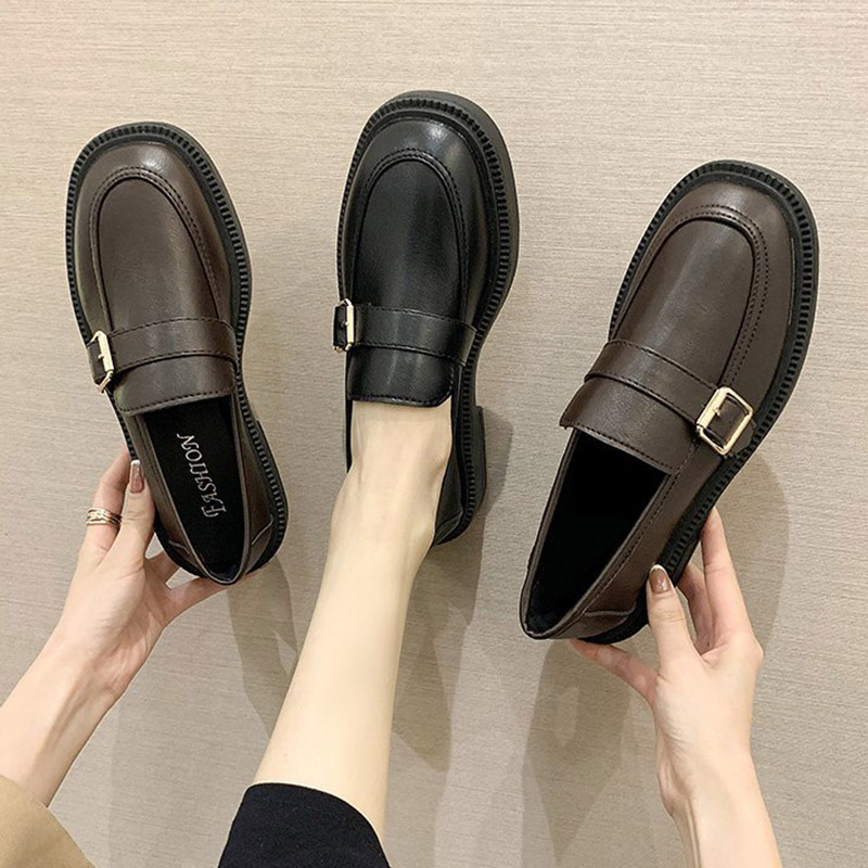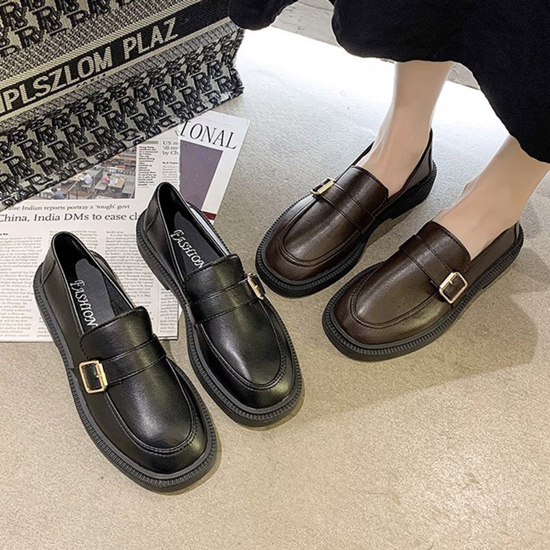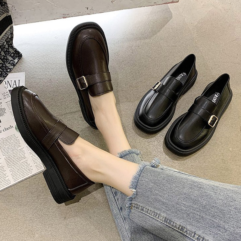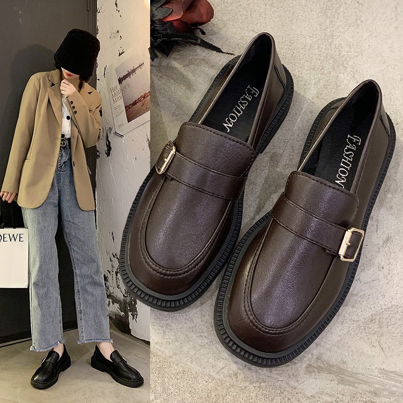 Autumn Women Oxford Shoes Buckle Slip on Shoes Buckle Loafers Sewing Leather Casual Shoes For Female zapatos mujer 8865N