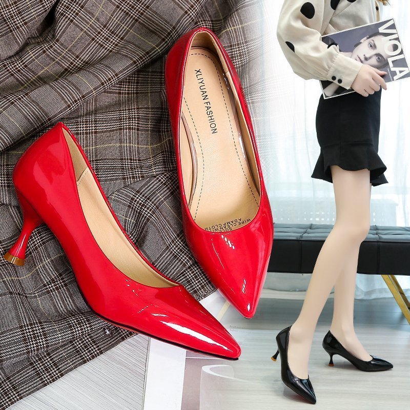 Cheap Women’s Pumps, Buy Quality Shoes Directly from China Suppliers:6.5cm High Heels Dress Shoes Patent Leather Women Pumps Pointed Toe Boat Shoes Thin Heeled Ol Office Lady Shoe Yellow Red 8874N