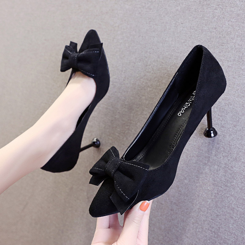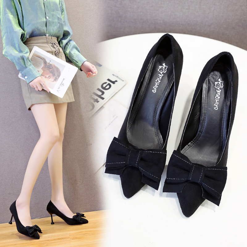 Cheap Women’s Pumps, Buy Quality Shoes Directly from China Suppliers:Spring Women Boat Shoes Faux Suede High Heels Dress Shoes Pointed Toe Butterfly Knot Pumps Thin Heeled Ladies Office Shoe 8882N