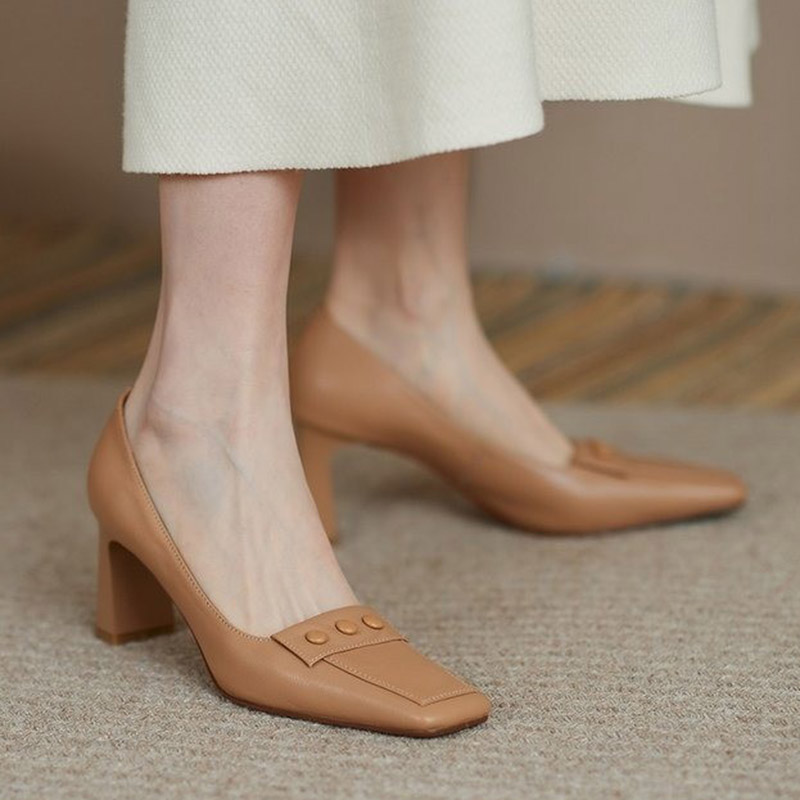 Sexy Woman Pumps High Heels Dress Shoes Square Toe Boat Shoes Wedding Shoes Ol Office Ladies Shoes Retro Zapatos mujer 8898N