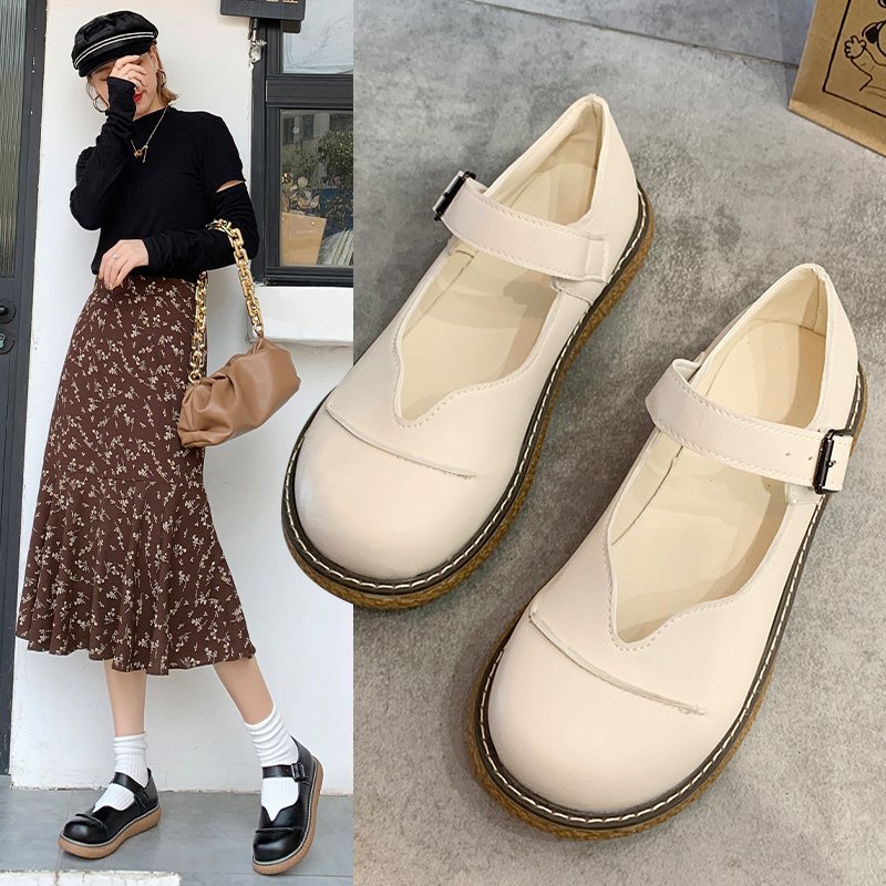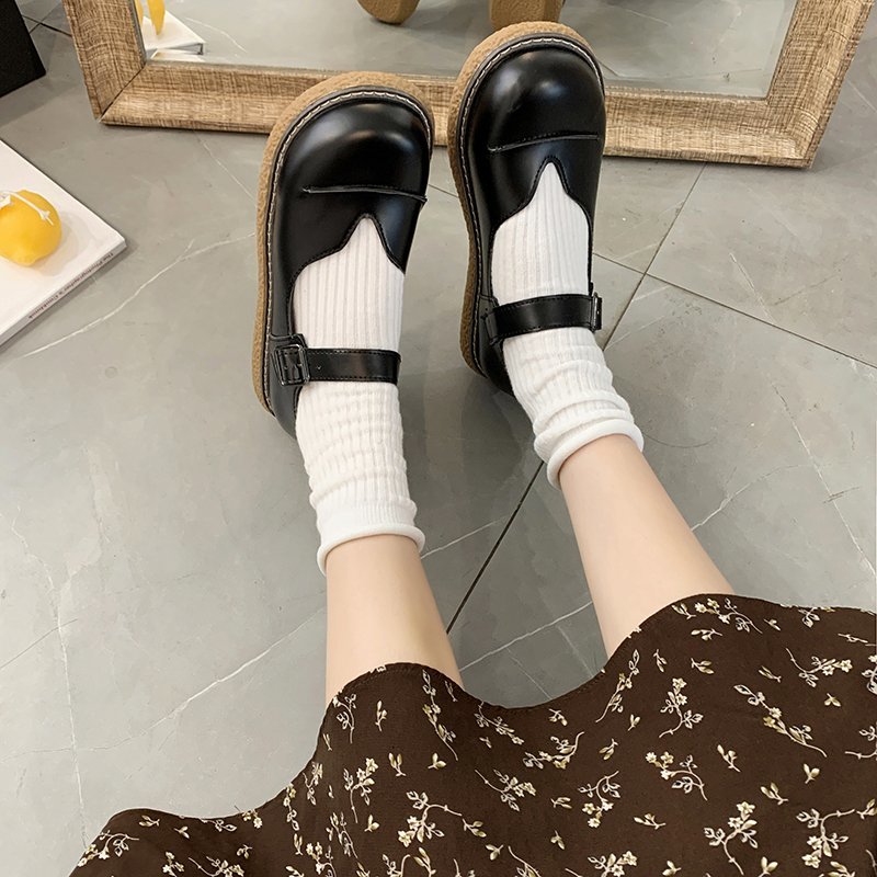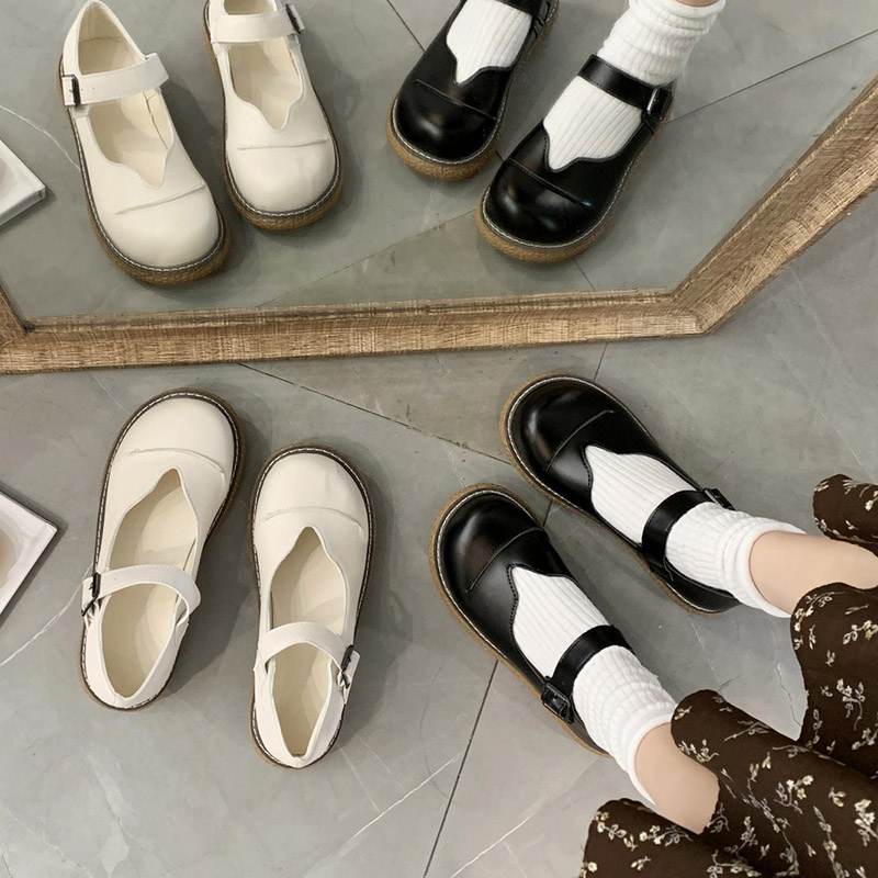 Spring Lolita Shoes Ankle Strap Woman Flats Black Mary Janes Shoes Girls Casual Shoes Platform Shallow zapatos mujer 8935N