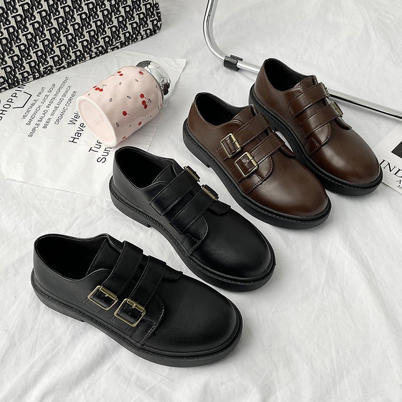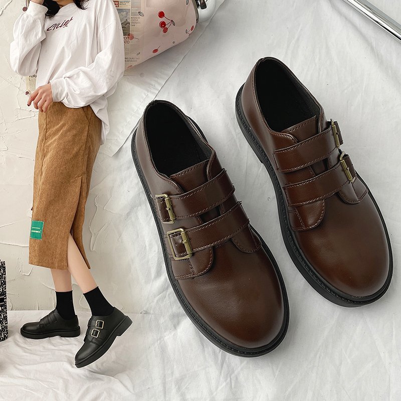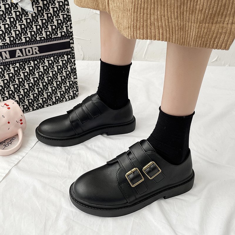 Spring Women Oxford Shoes Double Buckle Lolita Shoes Round Toe Leather Casual Shoes For Girls Female Platform Shoes 8947N
