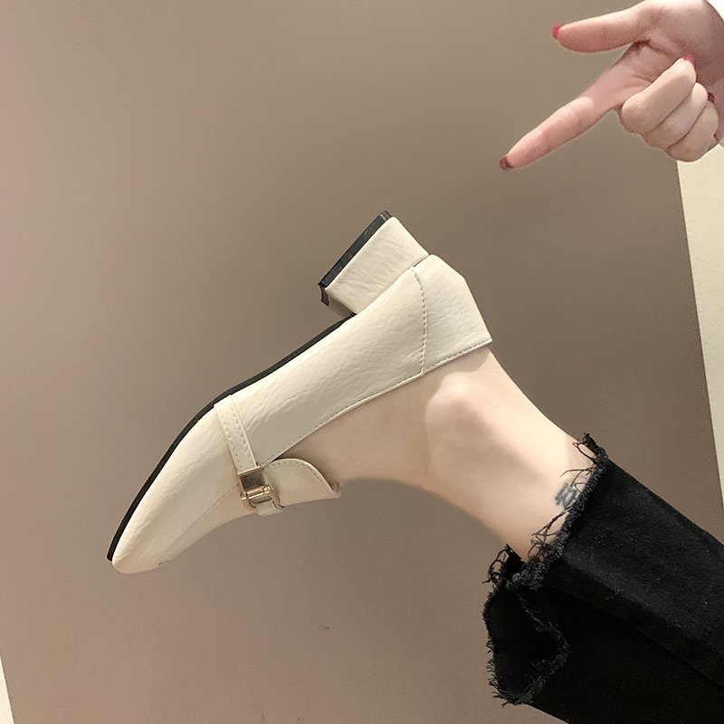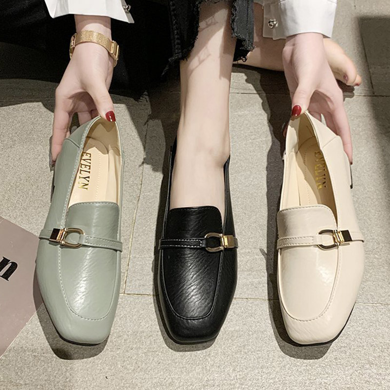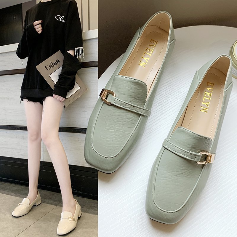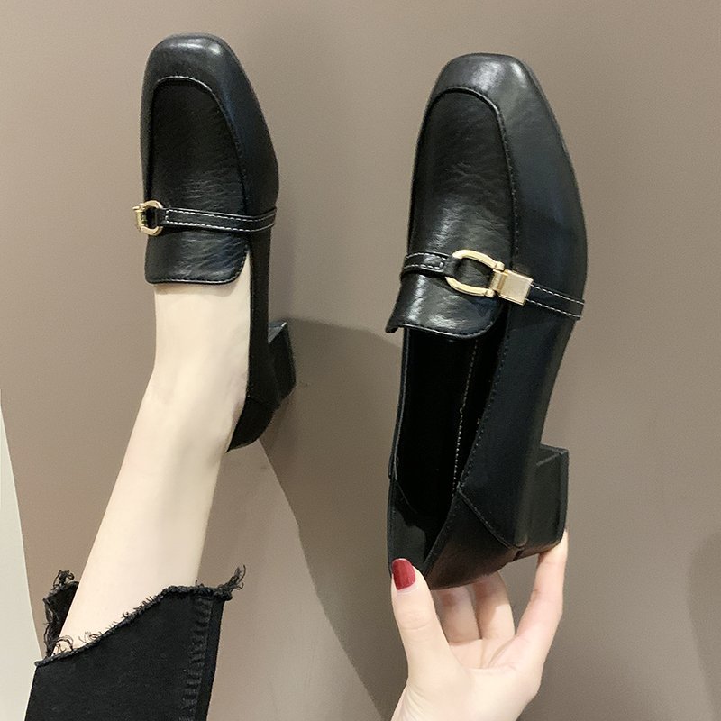 Spring Women Low Heels Dress Shoes Metal Buckle Boat Shoes Woman Lofers Oxford Shoes Square Toe Pumps zapatos mujer 8950N