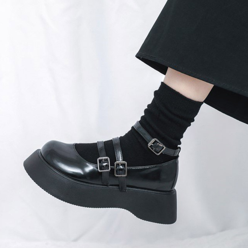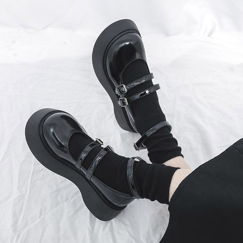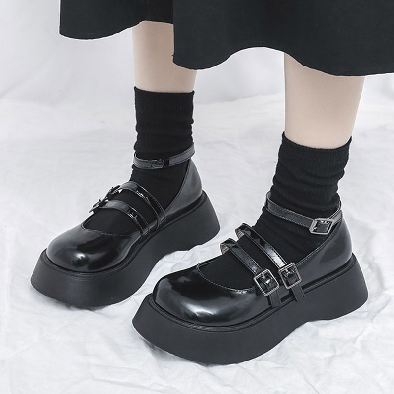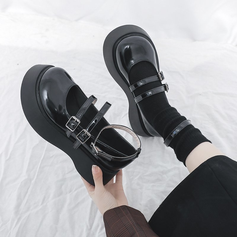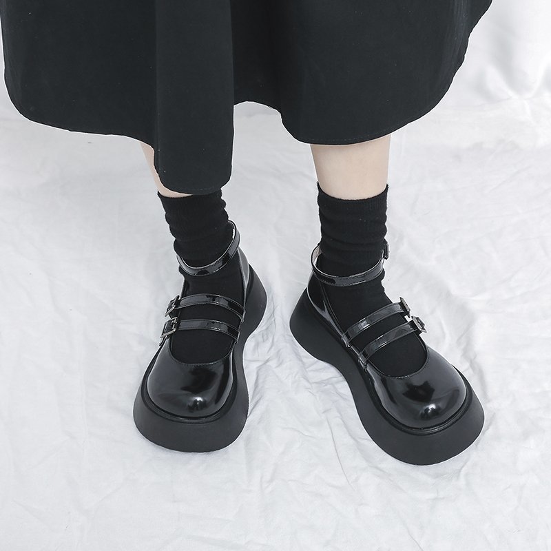 Spring Women Flat on Platform Shoes 3 Buckle Ankle Thick Sole Lolita Shoes Leather Casual Shoes For Girls zapatos mujer 8958N