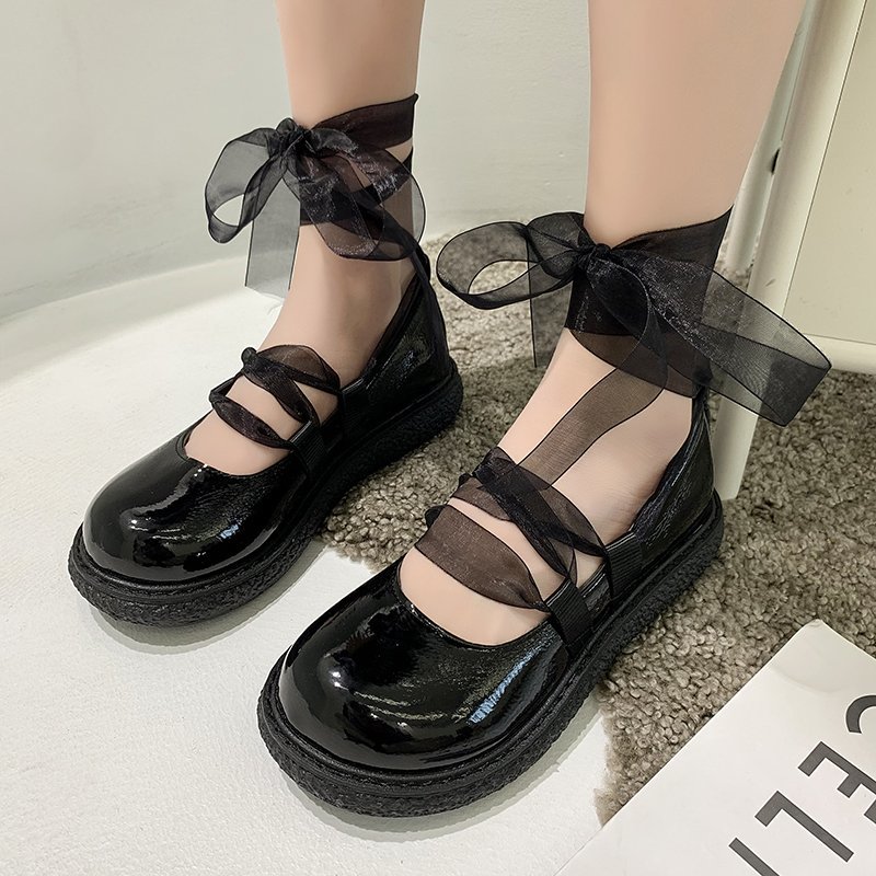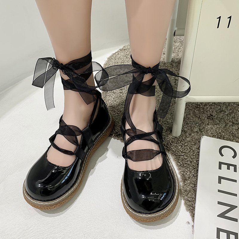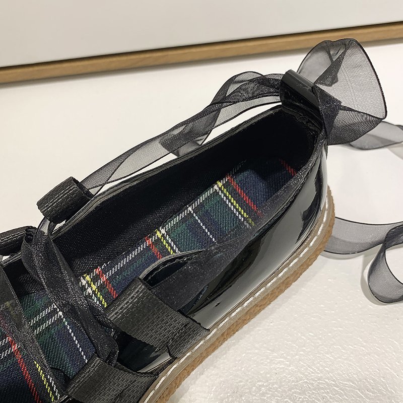 Spring Autumn Lolita Shoes Lace Cross-tied Platform Shoes Patent Leather Casual Shoes Girls Ladies Ankle Strap Band Flats 8955N