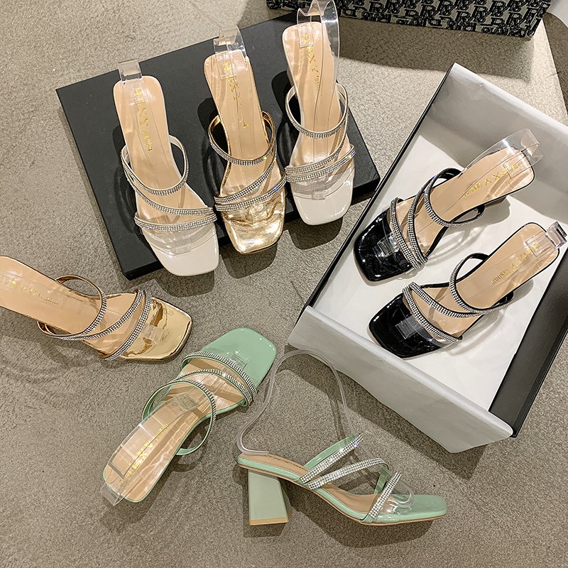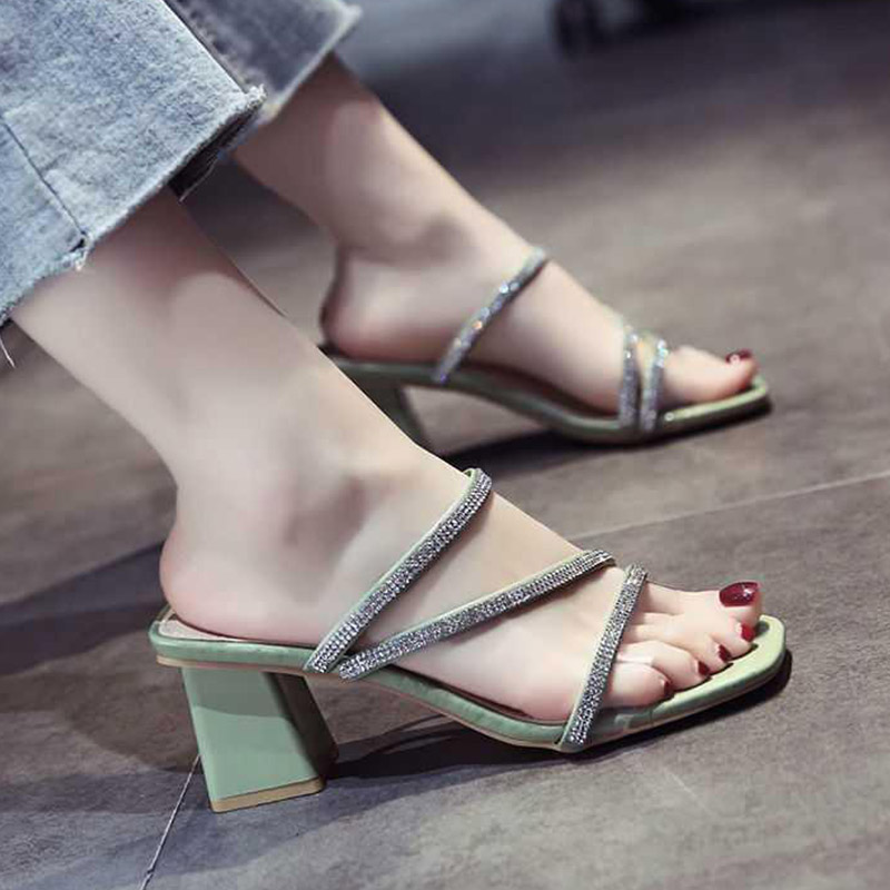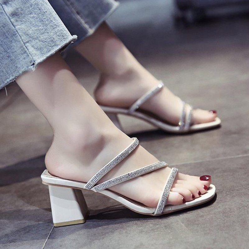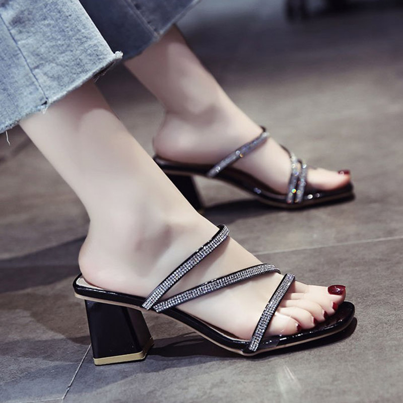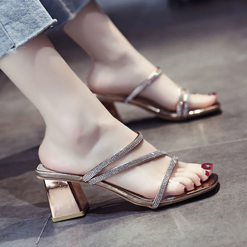 Summer Women High Heels Slippers Crystal Dress Shoes Narrow Band Slippers Bling Sides Sexy Heel Shoes zapatos mujer 8975N