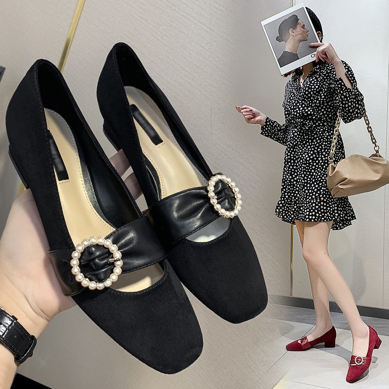 Cheap Women’s Pumps, Buy Quality Shoes Directly from China Suppliers:Spring Autumn Women Dress Shoes Pearls Buckle Pumps Mid Heels Mary Janes Shoe Square Heeled Boat Shoes Ladies Red Black 8979N