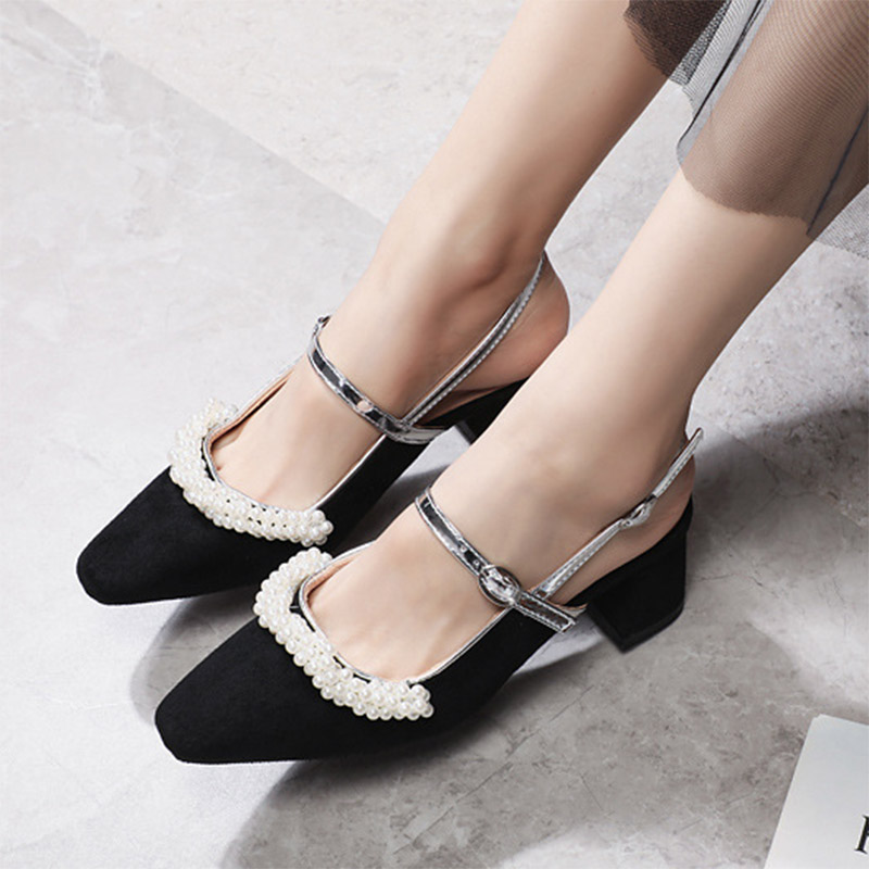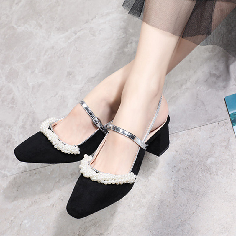 Spring Summer Women Sandals Mary Janes Dress Shoes String Bead Slingbacks Mid Heels Pumps Pearls sandalias mujer 8980N