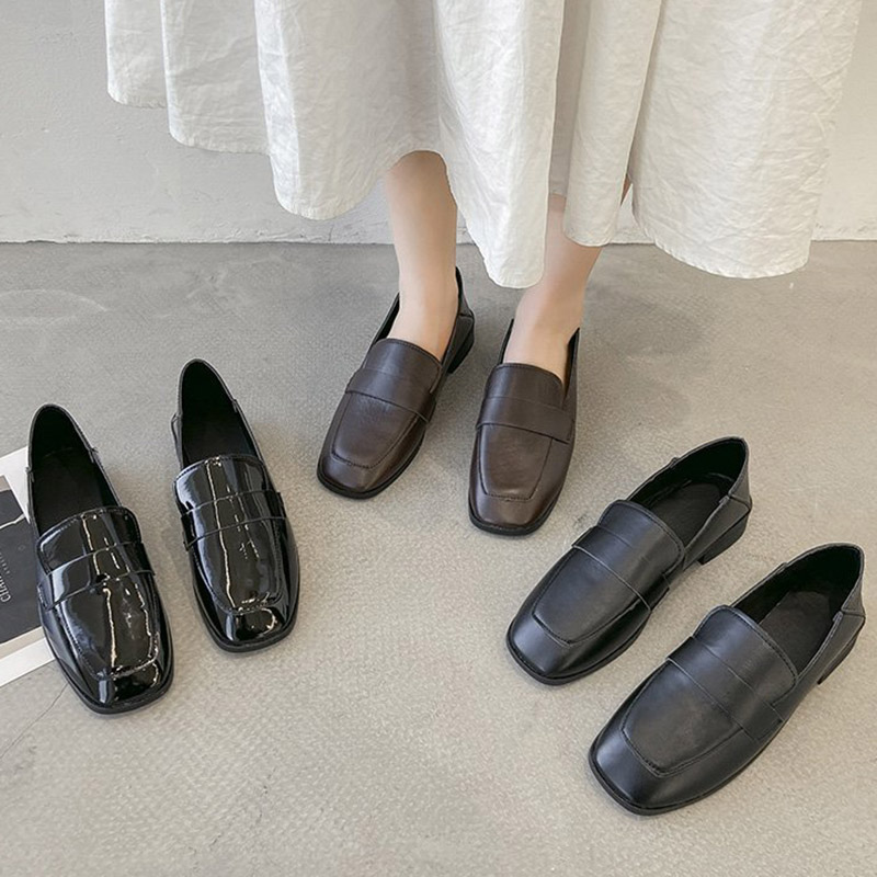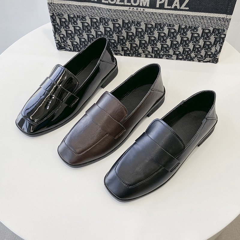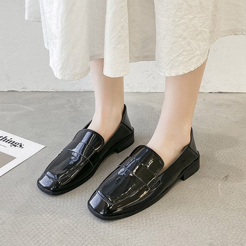Women Loafers Patent Leather Slip on Ladies Shoes Square Toe Casual Shoes Woman Flats Black Oxford Shoes Mules Spring 8995N