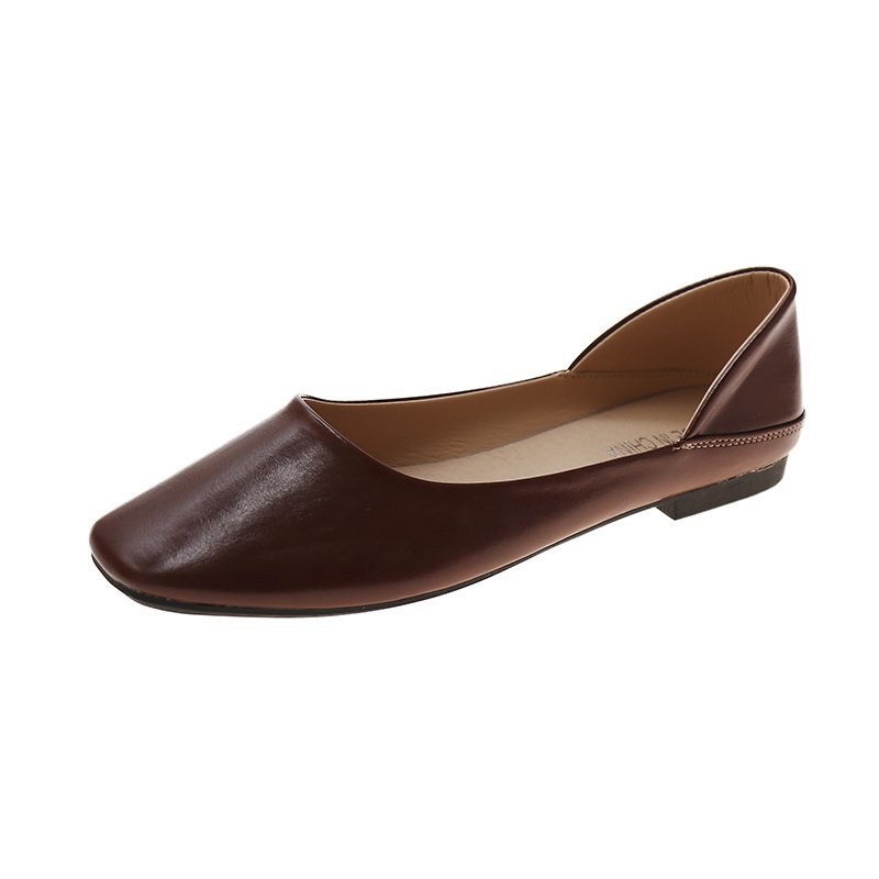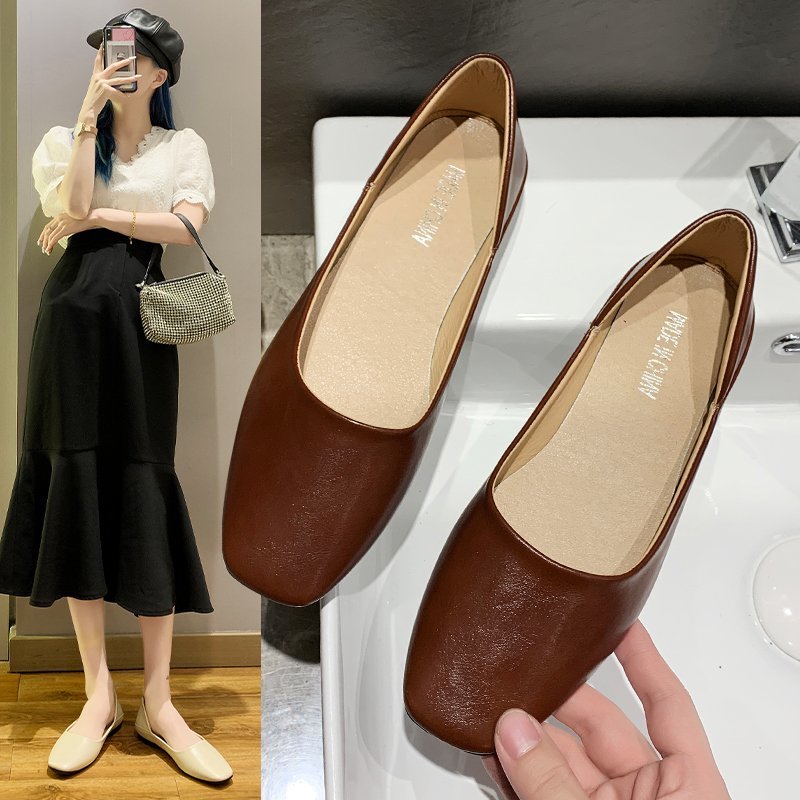Plus Size 35-43 Woman Flats Leather Slip on Flat Shoes Women Loafers Black Shallow Boat Shoe Square Toe Ballet Flats Mules 9028N