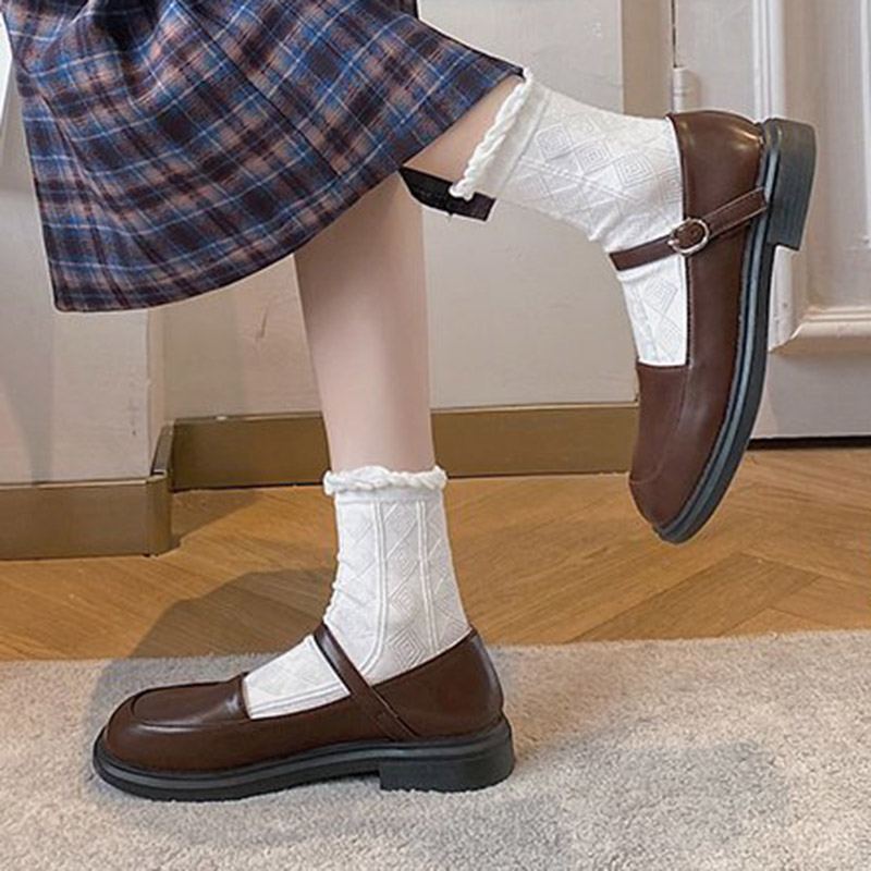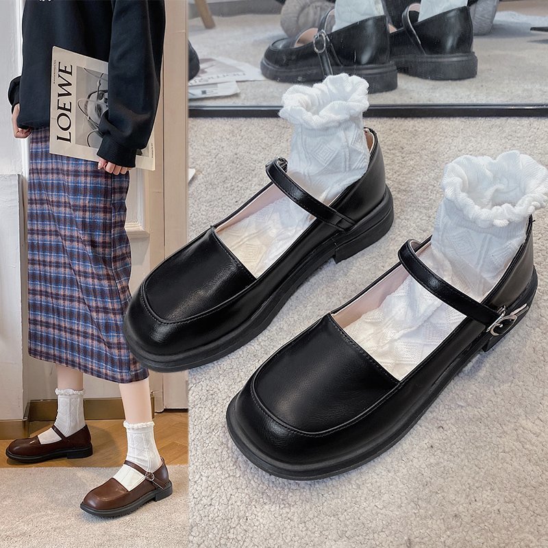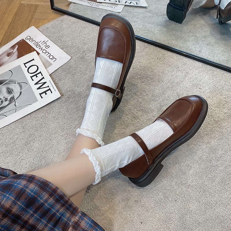 Lolita Shoes Retro Women Mary Janes Shoes Buckle Strap Round Toe Low Heels Casual Shoe Japanese Style Girls Shoe Spring 9031N