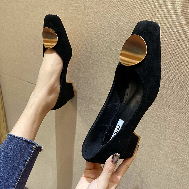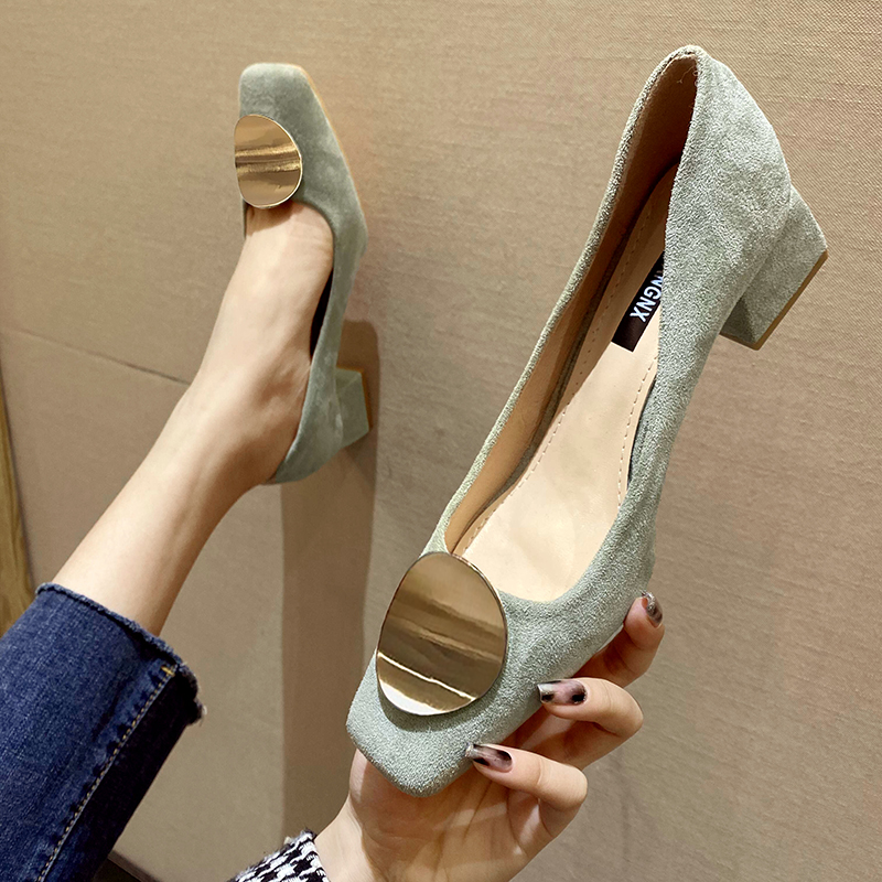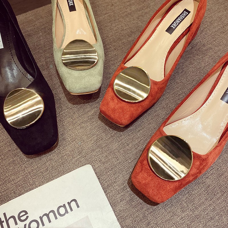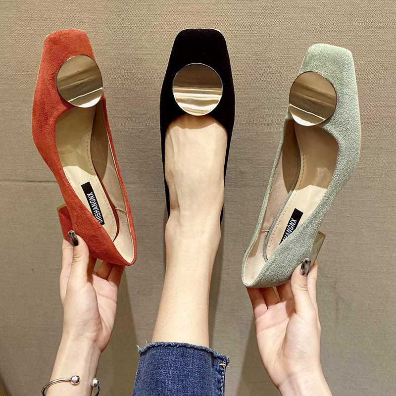 Cheap Women’s Pumps, Buy Quality Shoes Directly from China Suppliers:Ol Office Lady Shoes Women Square Toe Boat Shoes Faux Suede Pumps Mid Heels Dress Shoes Round Metal Ladies Shoe Orange 9051N