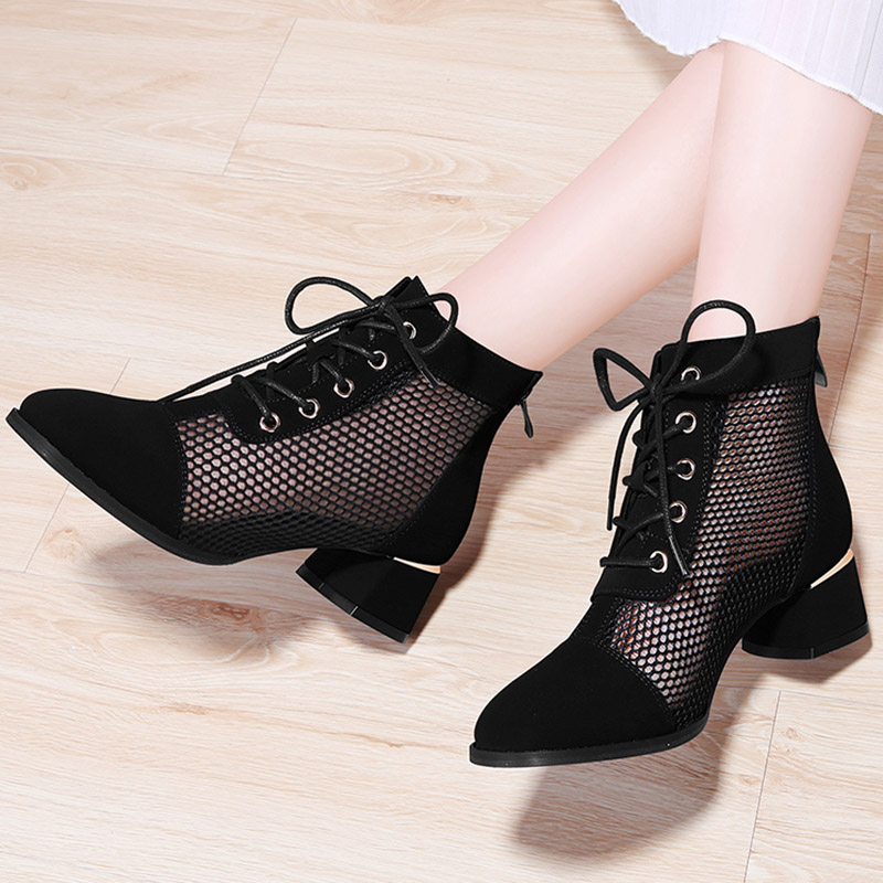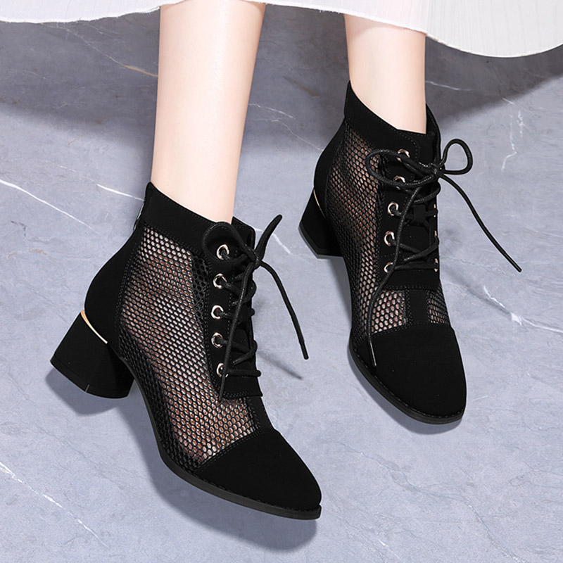 Plus Size 35-42 Gladiator Sandals Women Lace Up Ankle Boots Gauze High Heels Dress Shoes Sandal Boot Mesh sandalias botas 9077N