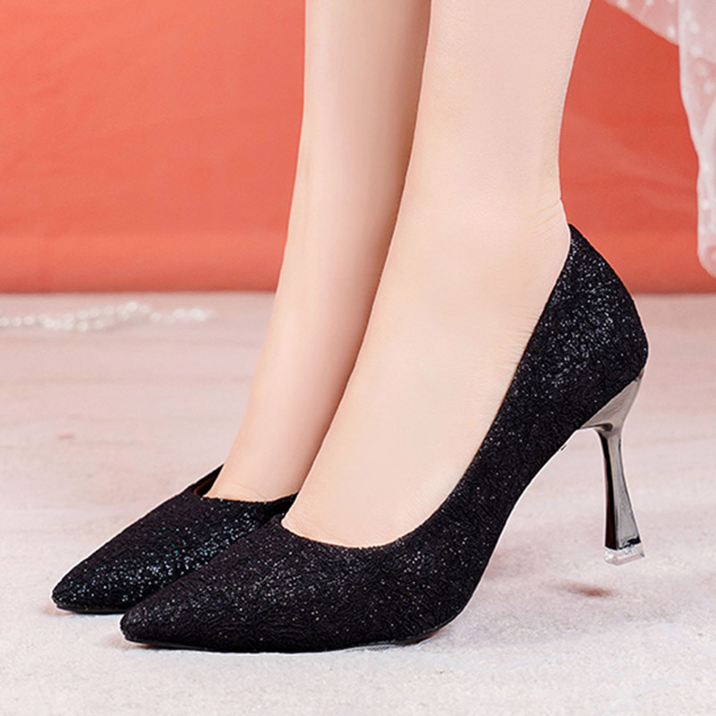 Cheap Women’s Pumps, Buy Quality Shoes Directly from China Suppliers:Plus Size 34 42 Black Sexy High Heels Dress Shoes Pointed Toe Pumps Thin Heel Ladies Shoes Sequined Cloth Boat Shoe Silver 9080N