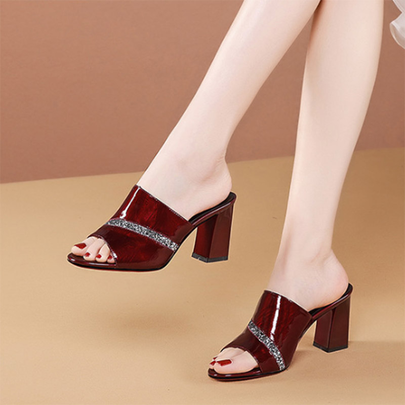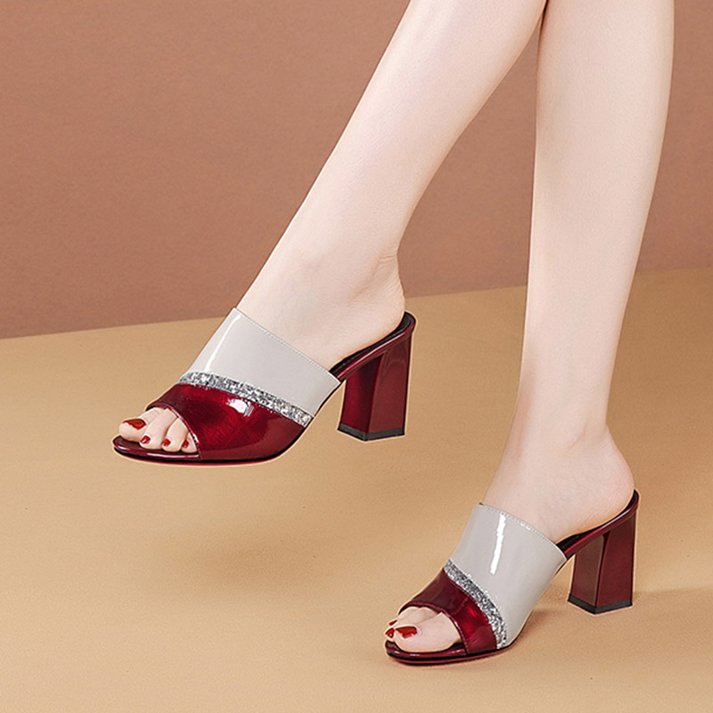 Summer Women Slipper High Heels Dress Shoes Peep Toe Pumps Bling Fashion Slides Ol Office Lady Shoes zapatos mujer 9103N