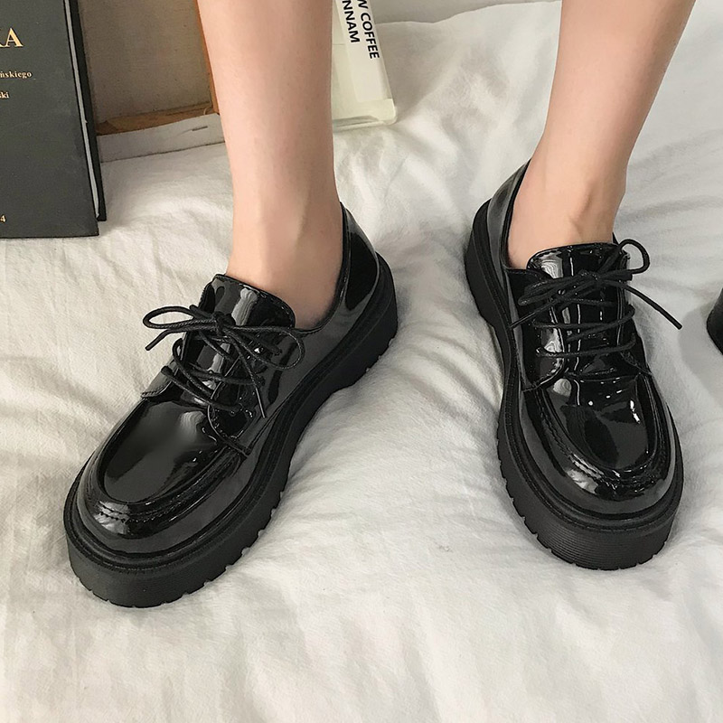 Cheap Women’s Flats, Buy Quality Shoes Directly from China Suppliers:Women Lace Up Platform Shoes Patent Leather Casual Shoes Flat on Platform Lolita Shoes Thick Sole Oxford Shoes Black Girls 9110N
