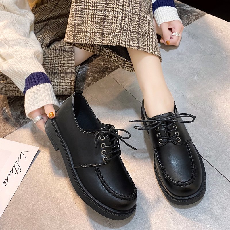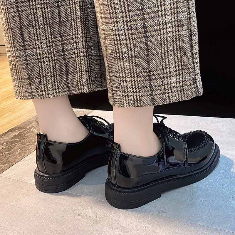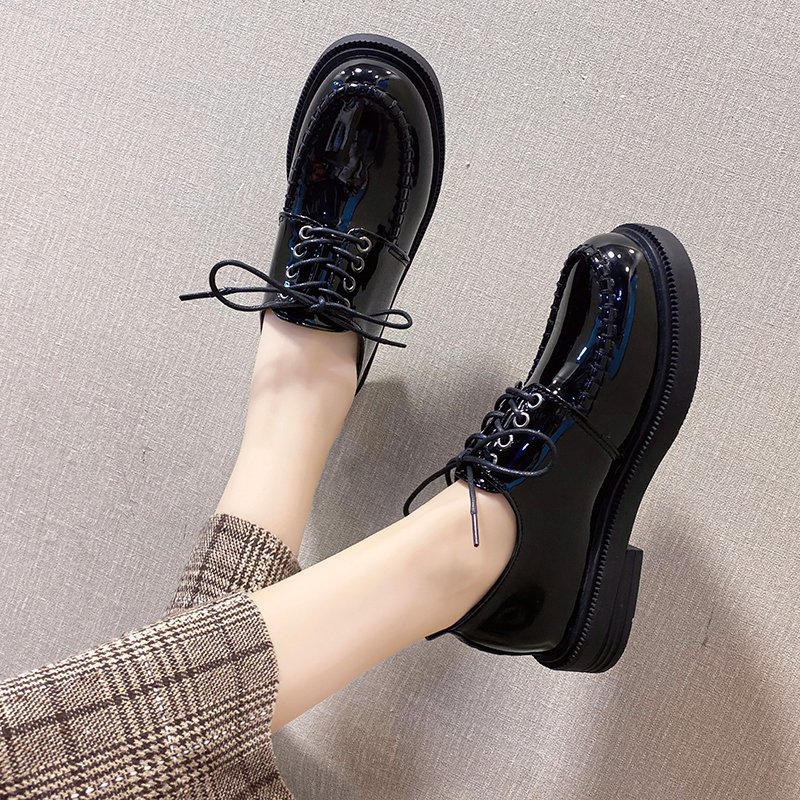 Women Oxford Shoes Sewing Casual Shoes Black Lace Up Platform Patent Leather Shoes Low Heels Brogue Shoes zapatos mujer 9112N