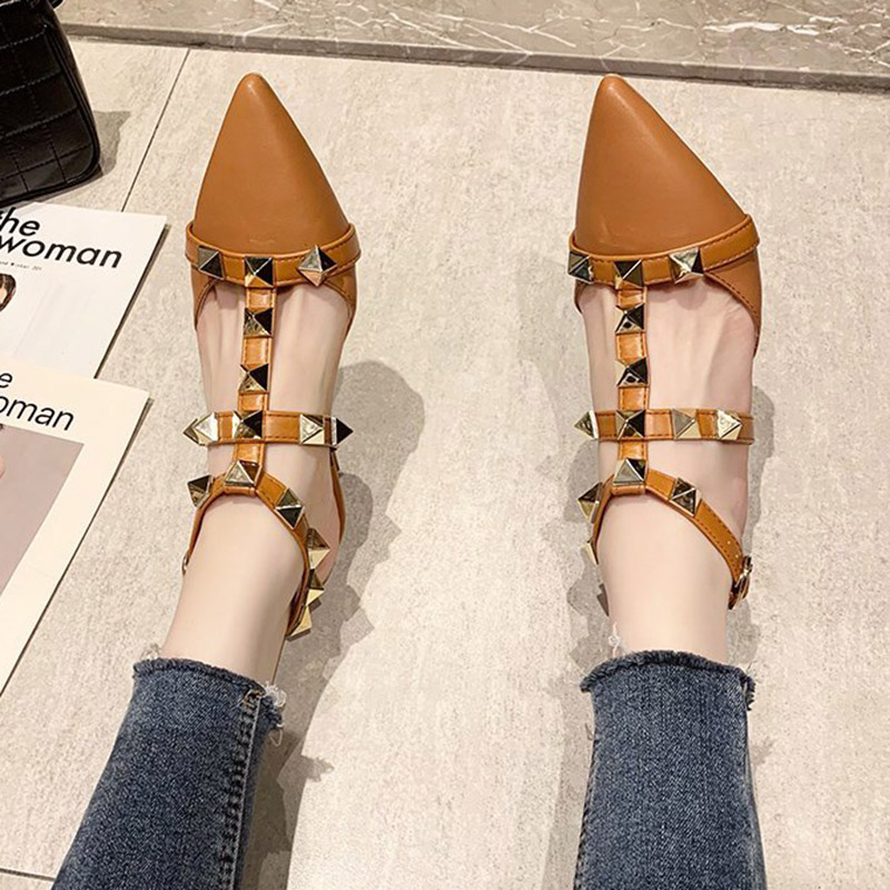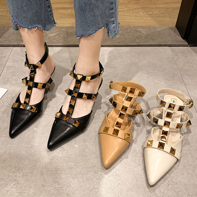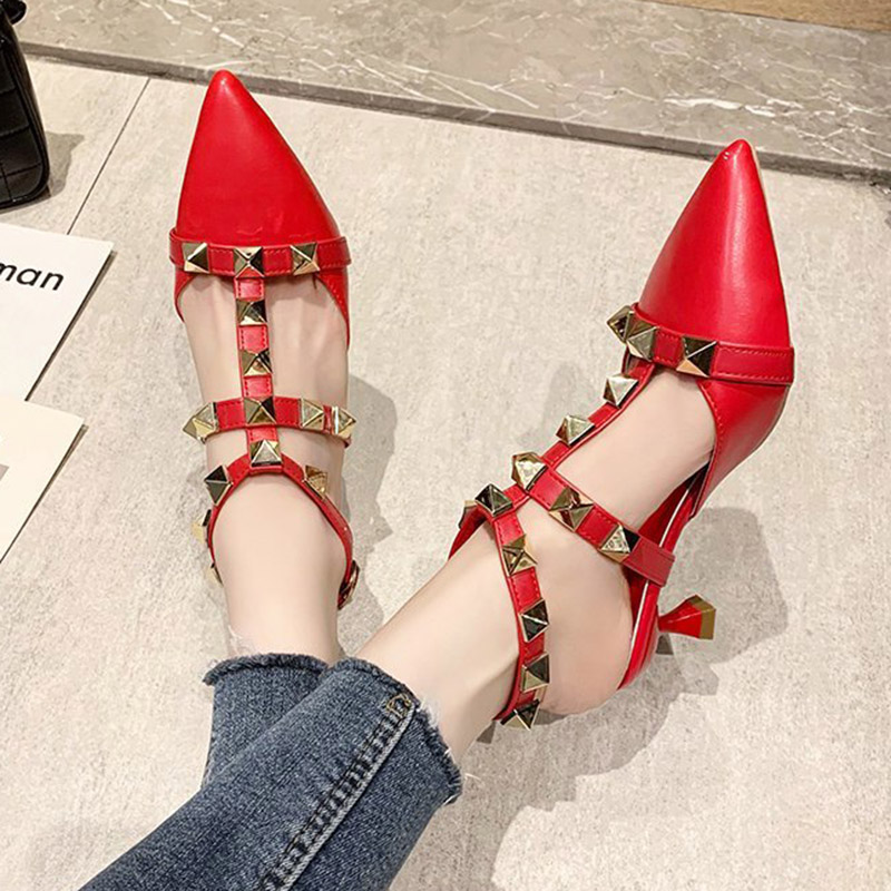 Plus Size 35-43 Women Ankle Strap High Heels Pointed Toe Rivets Sandals Ladies Shoes Summer Gladiator sandalias mujer 9122N