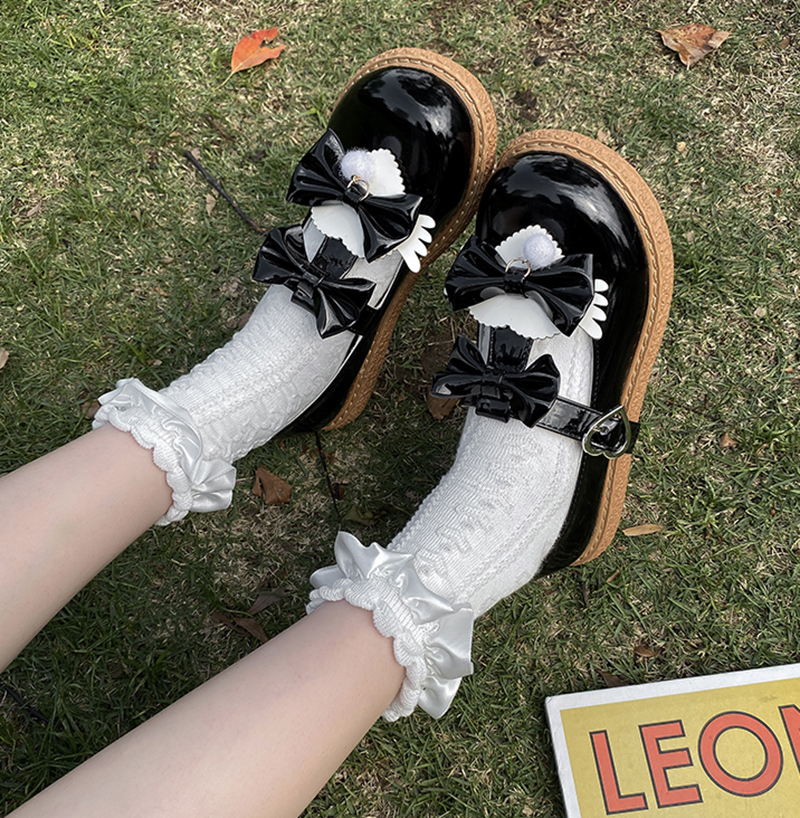 Girls Mary Janes Bowtie Lolita Shoes Spring Autumn Women Flats Round Toe Princess Shoes White Black zapatos mujer 8039N
