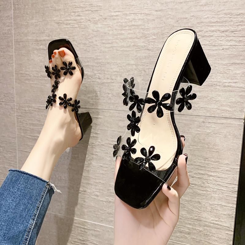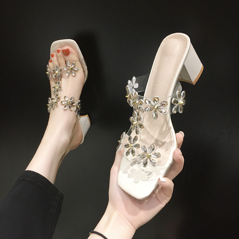 Sexy Heels Shoes Women Slippers Flowers Rhinestone High Heels Dress Shoes Peep Toe Slides Summer New Designer Shoes 9201N