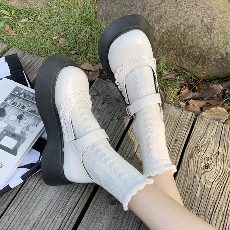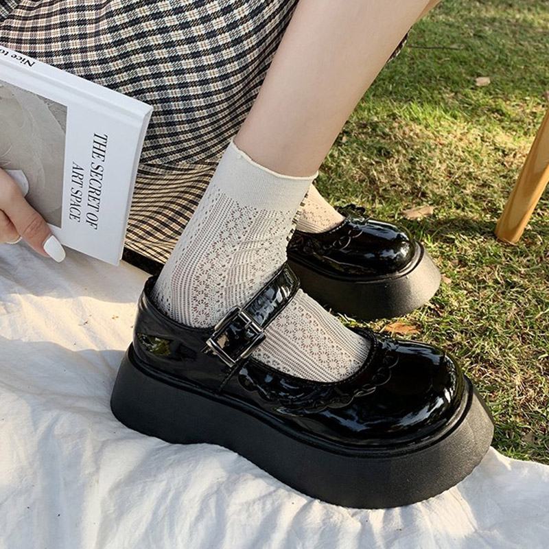 Lolita Shoes Lace Mary Janes Shoes Round Toe Platform Leather Shoes Women Oxford Shoes Black Girls Student Thick Sole 9202N