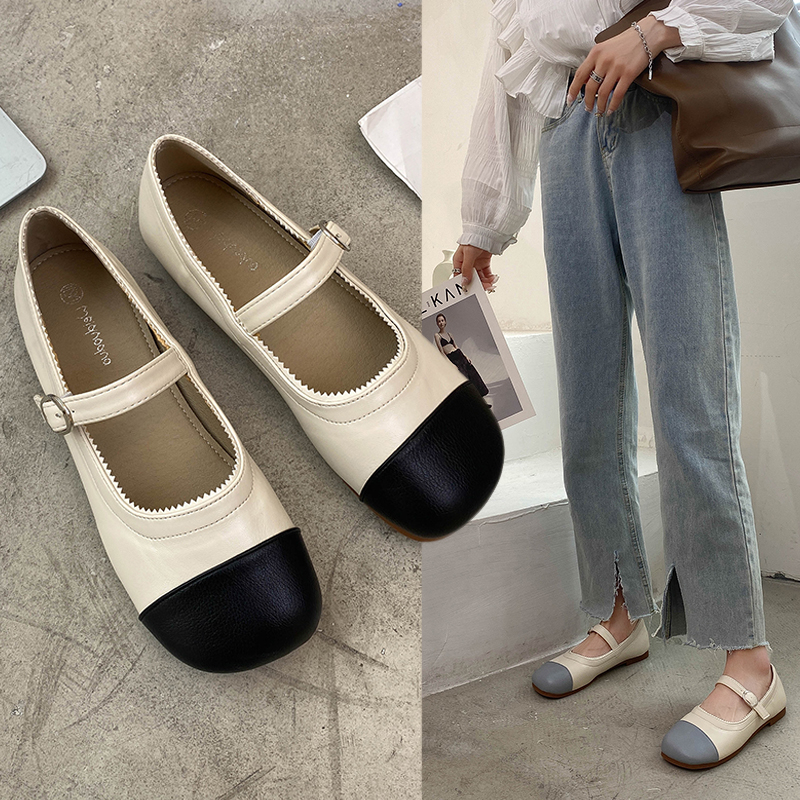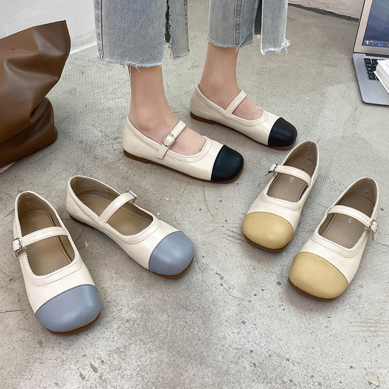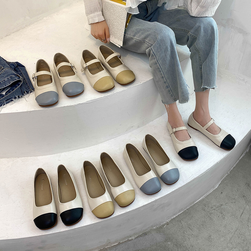 Spring Autumn Women Flats Patchwork Mary Janes Shoes Girls Square Toe Boat Shoes Ladies Oxford Shoe Leather Casual Shoes 9207N