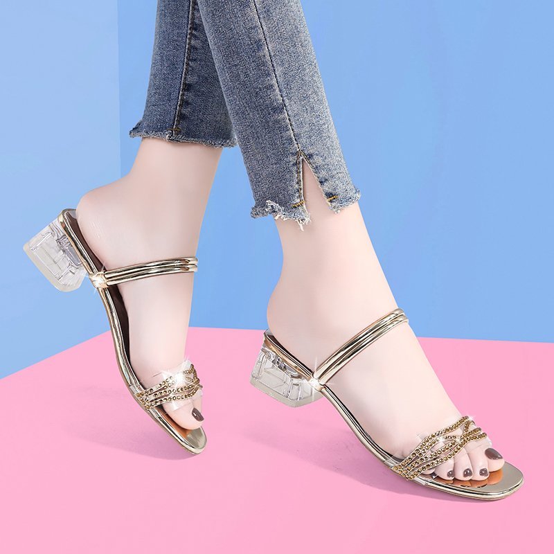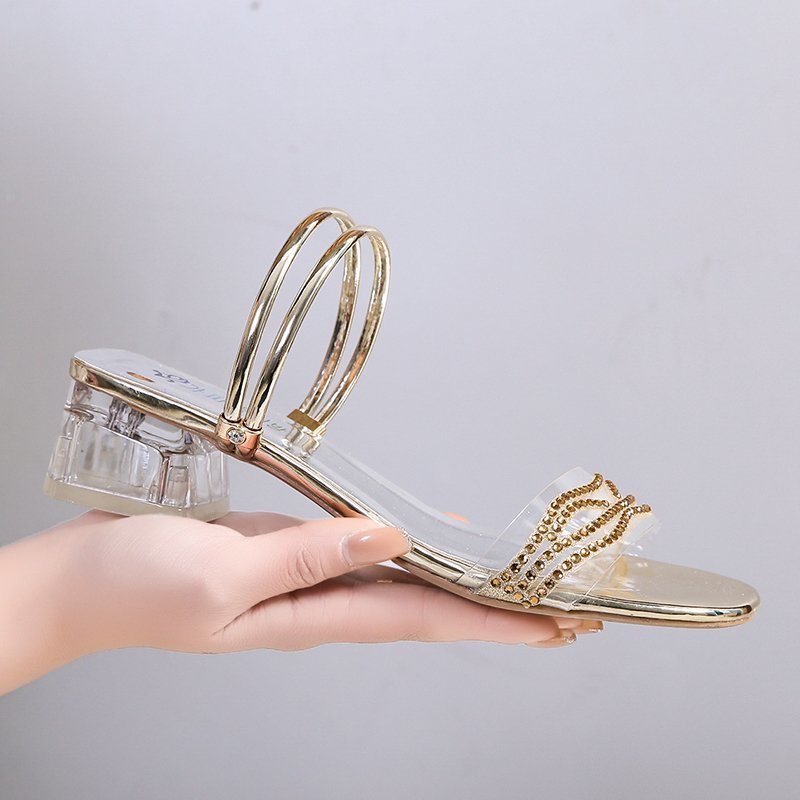 Women Slippers Summer Shoes Woman Sandals Crystal Transparent Beach Shoes Silver Wedding Shoes Ladies Clear Sexy Heel 9217N