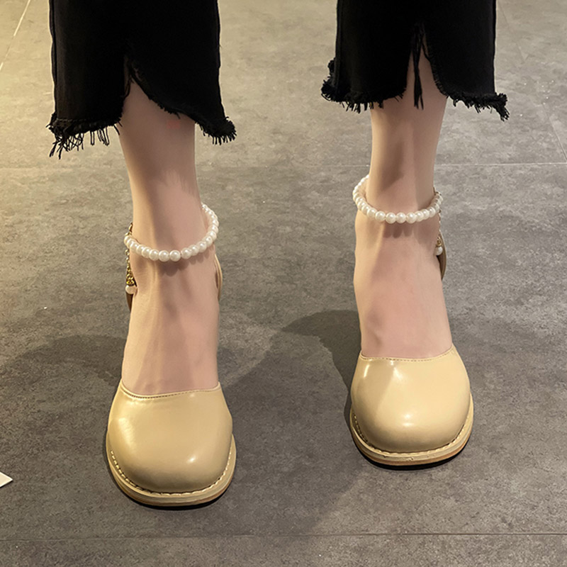 Summer Women Sandals Open Toe High Heels Dress Shoes Ladies Beading Ankle Strap Pearls Wedding Shoes Sandalias Mujer 9189N