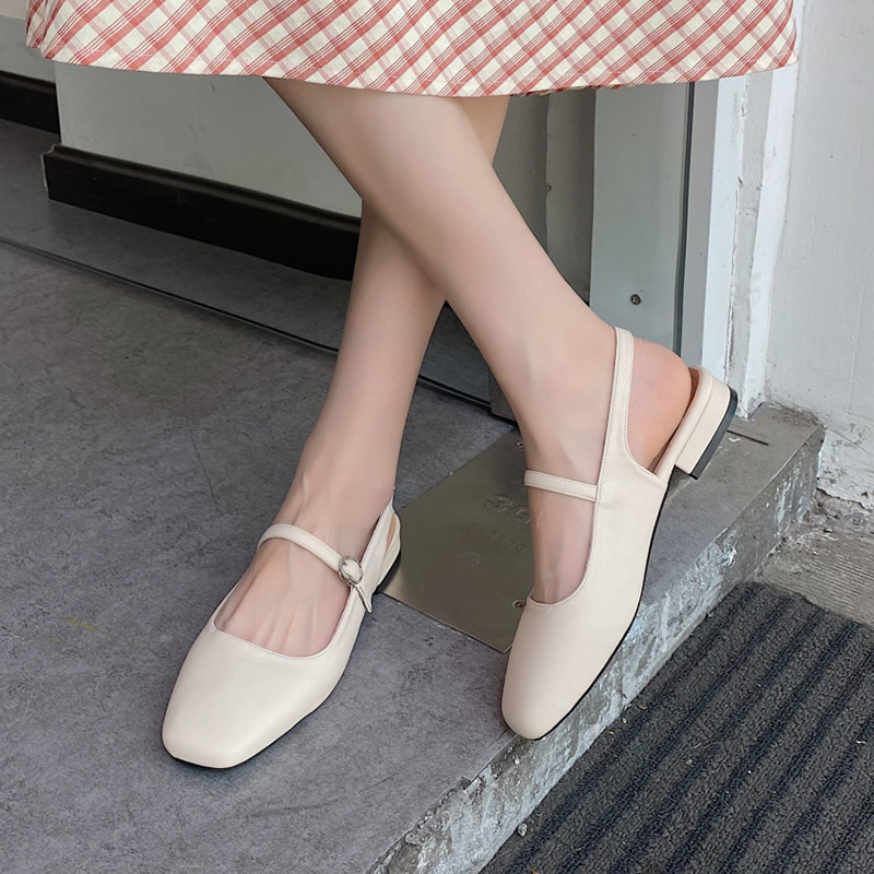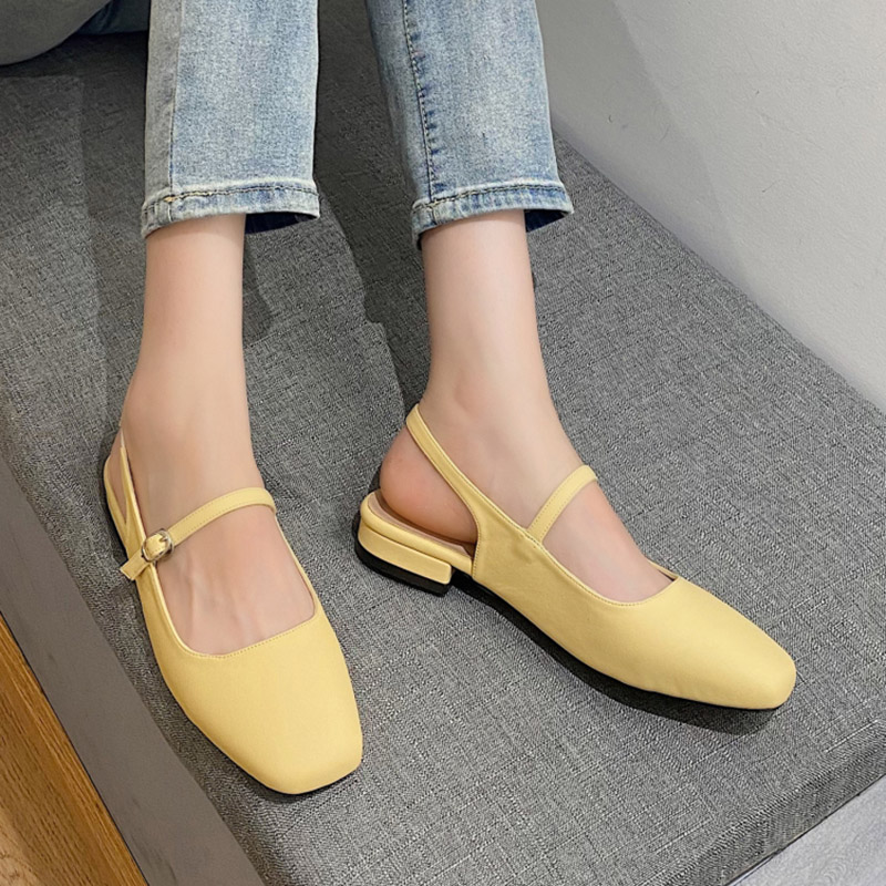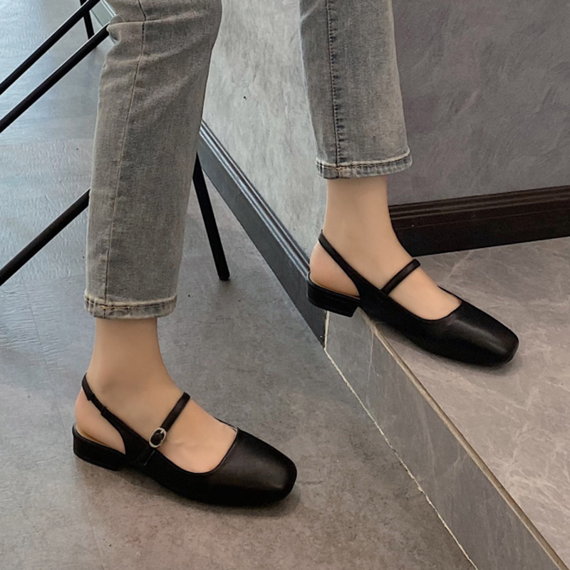 Women Flats Summer Woman Sandals Square Toe Slip on Shoes Back Strap Ladies Shoes Low Heels Dress Shoes Zapatos Mujer 9269N