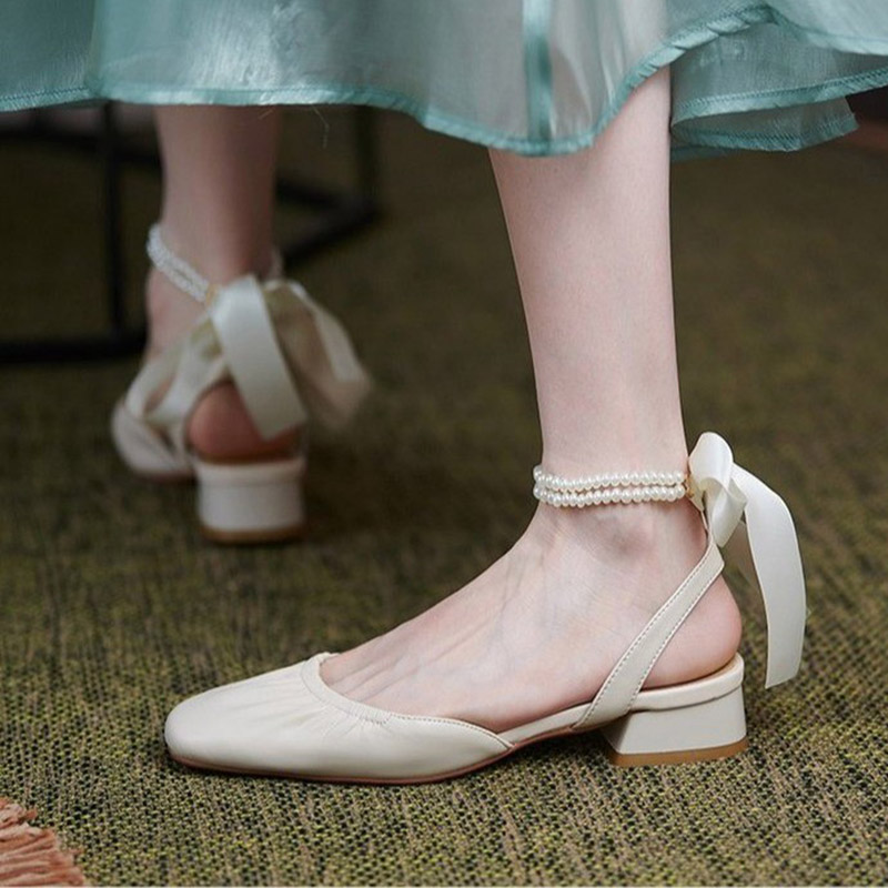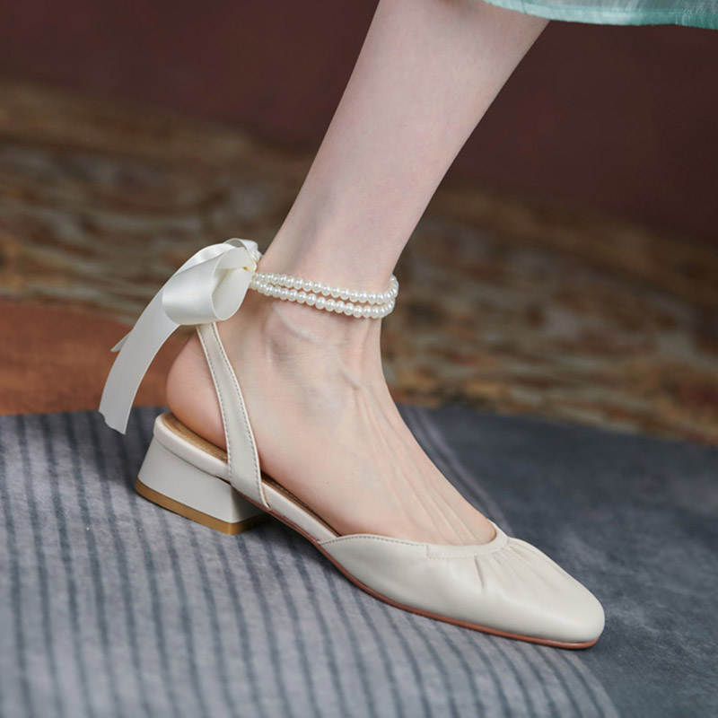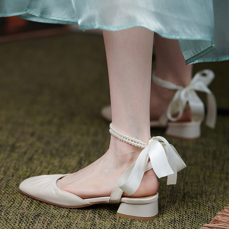 Women Sandals Summer Shoes Woman String Beading Ankle Strap Sandal Back Bowtie Princess Shoes Low Heels Zapatos Mujer 9271N