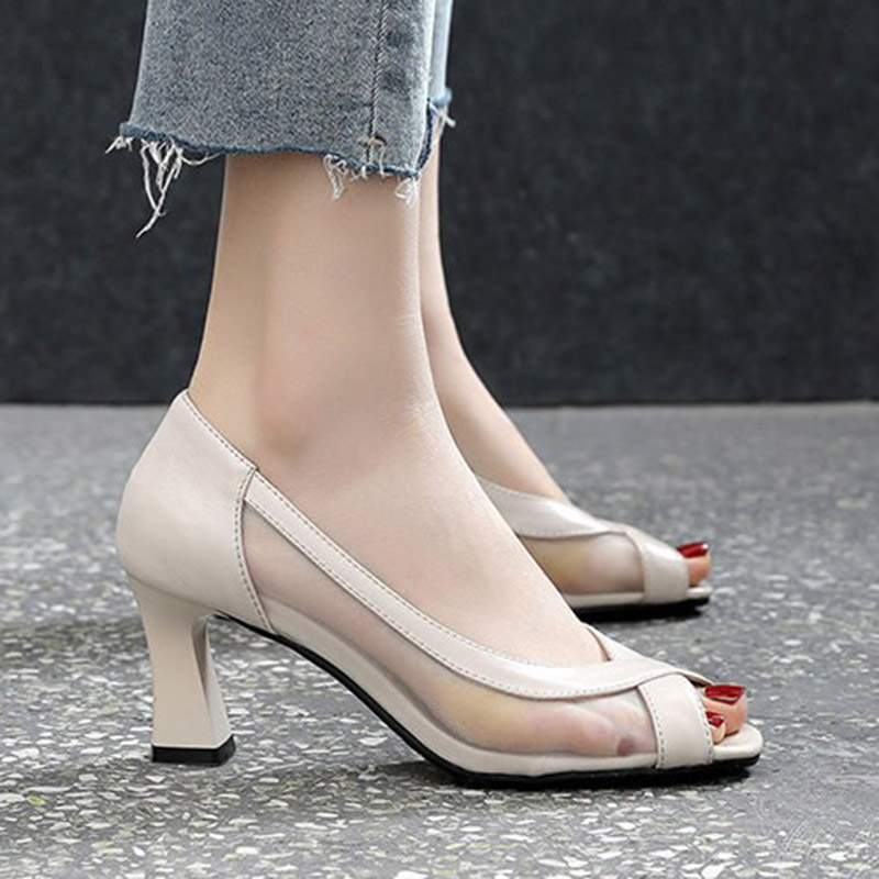 Summer Women Open Toe Pumps Mesh High Heels Dress Shoes Black Sexy Heels Sandals Woman Boat Shoes Sandalias mujer Autumn 9276N