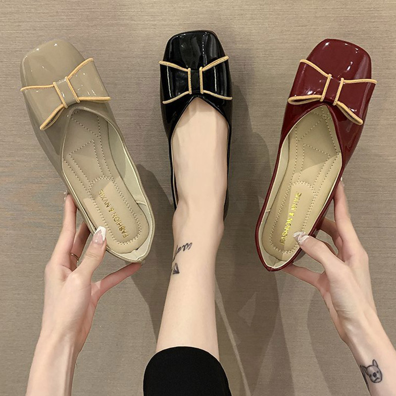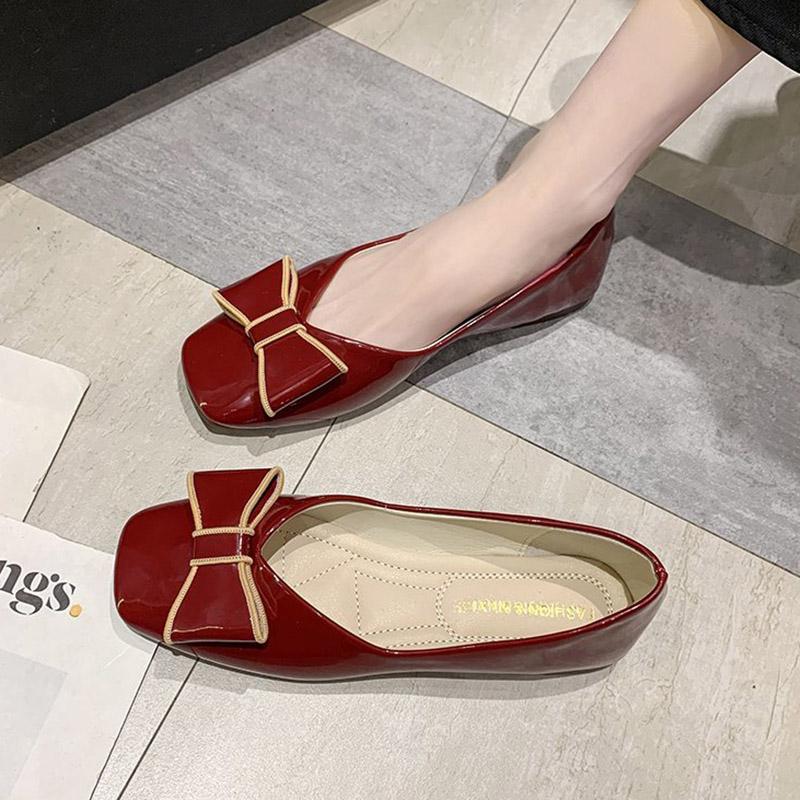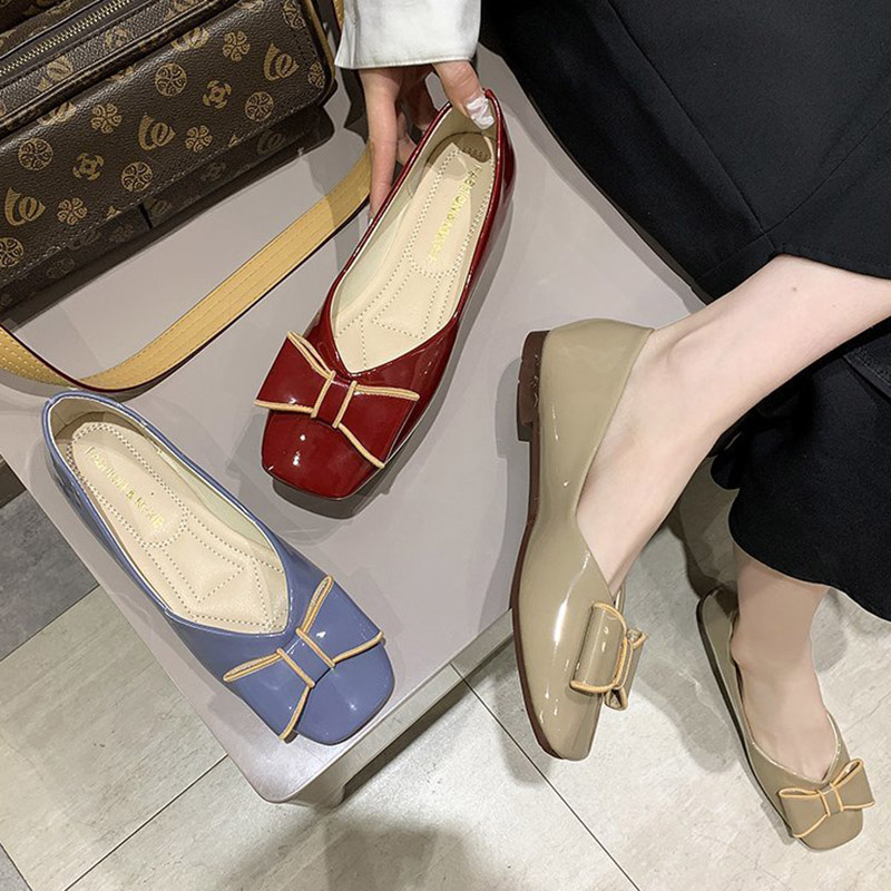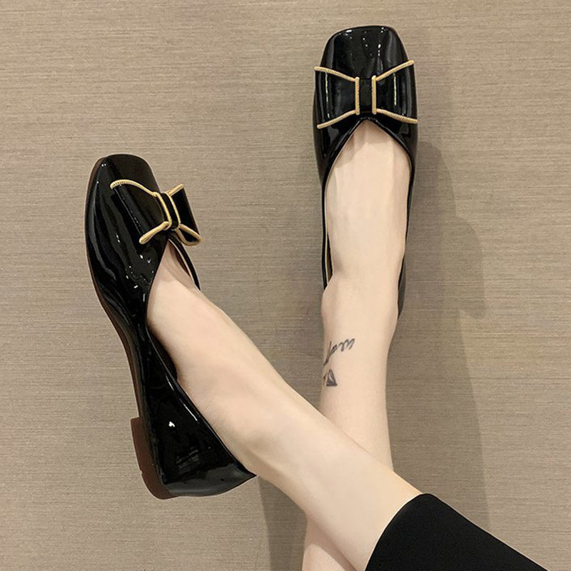 Women Flats Square Toe Slip on Shoes Patent Leather Boat Shoes Bowtie Ballet Flats Comfortable Ladies Shoe Zapatos Mujer 9284N